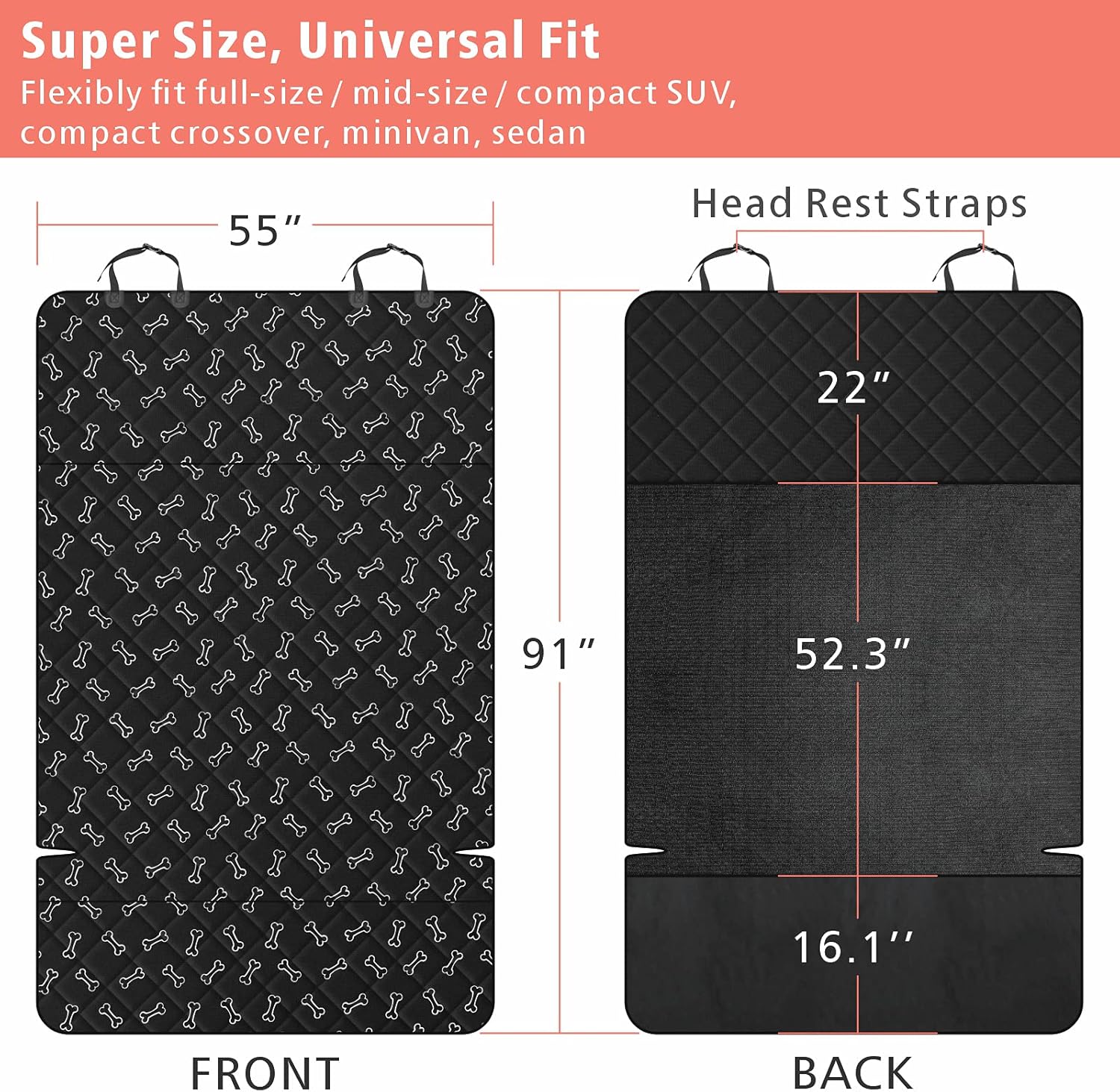 - Universal Fit: This cargo cover for dogs measures 55*91 inch, fits full-size /mid-size / compact SUV, compact crossover, minivan, sedan. Foldable to adjust its size to fit specific vehicles
