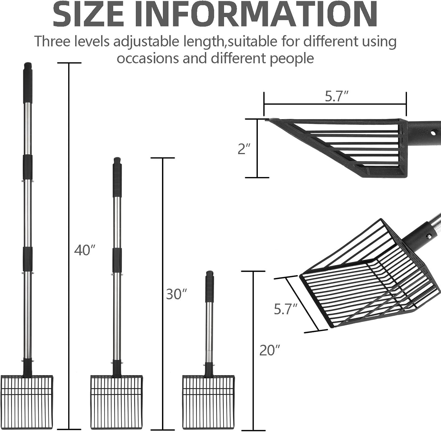 - [3 Levels Length Adjustable]: The handle length can be adjusted from 19.9 inches to 39.8 inches. It can be assembled and disassembled with the press of a button, and the holding handle works very well. Three kinds of lengths can be adjusted to meet the needs of people of different heights. From then on, you don’t need to bend down to serve your cat