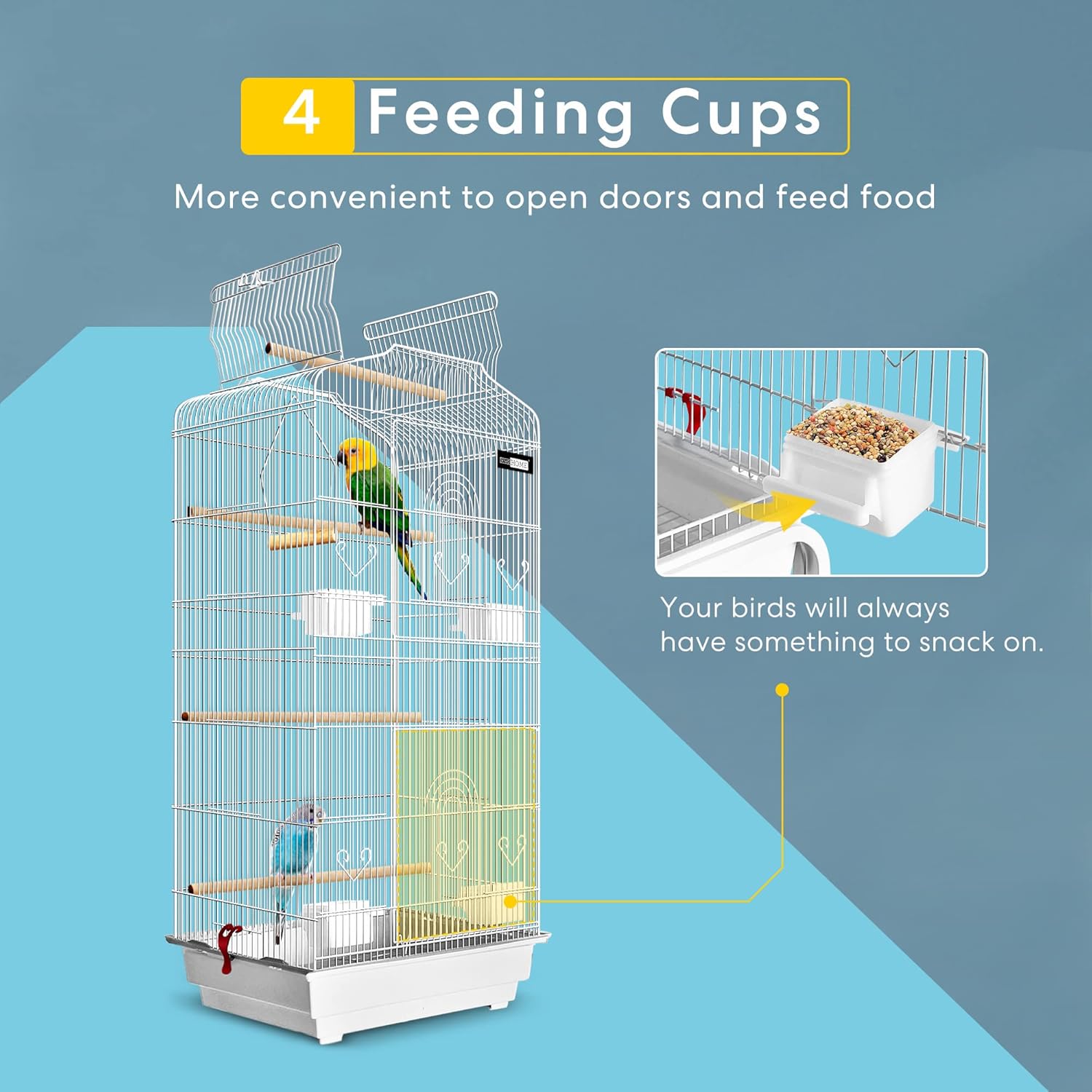 - EXTRA STORAGE SPACE - Comes with an additional mesh shelf so you can store food and toys out of the way; Provided with a wealth of accessories, including 4 Wooded Perches, 4 Feeding Cups, and 1 Swing