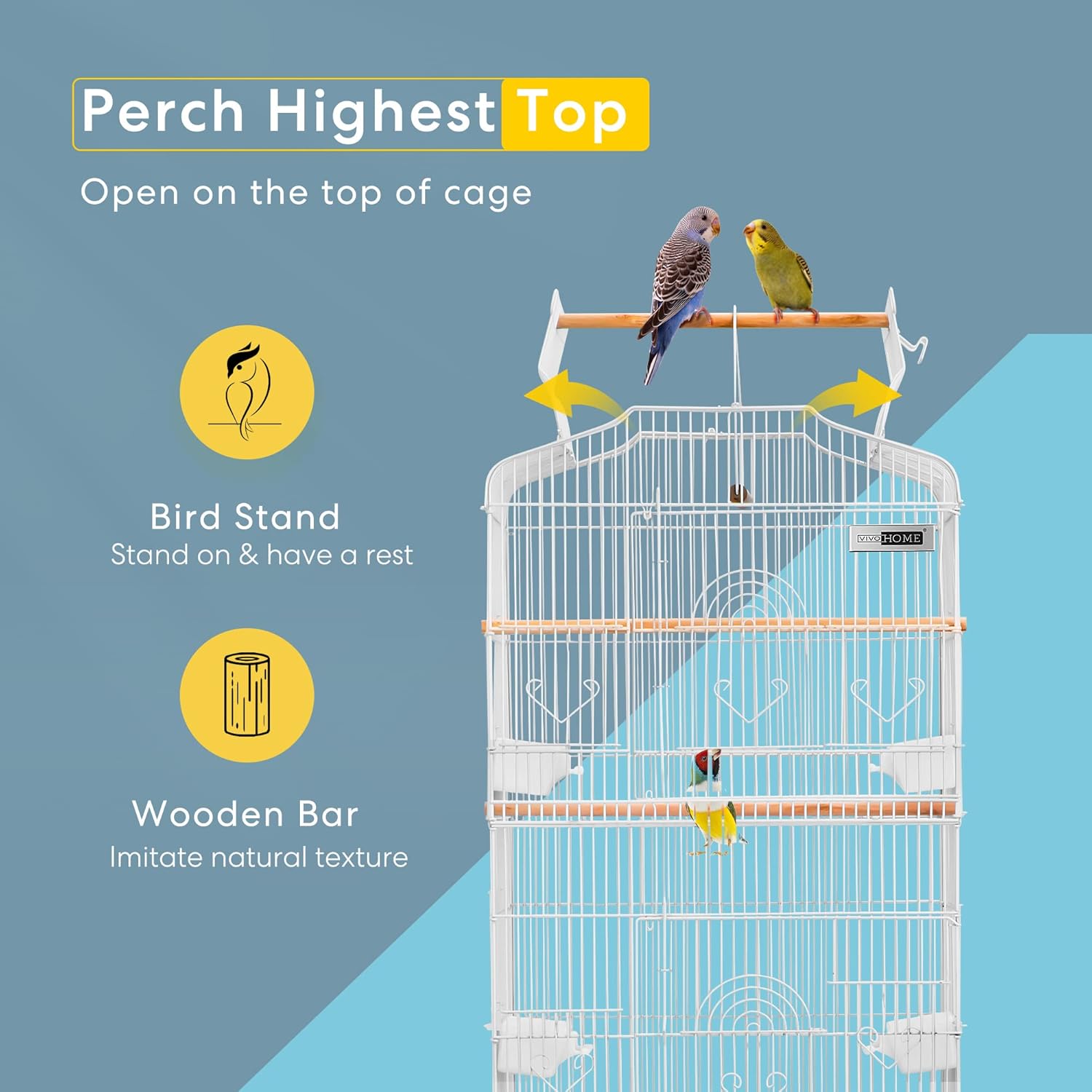 VIVOHOME 64 Inch Bird Cage with Play Top and Rolling Stand for Parrots Conures Lovebird Cockatiel Parakeets White