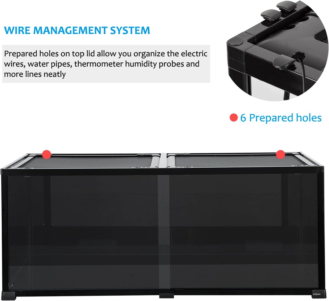 - ă270° Full View Glass TankăThis 3 sides glass of the 64 gallon reptile tank is transparent, allows you to watch and interact with your pets easily.