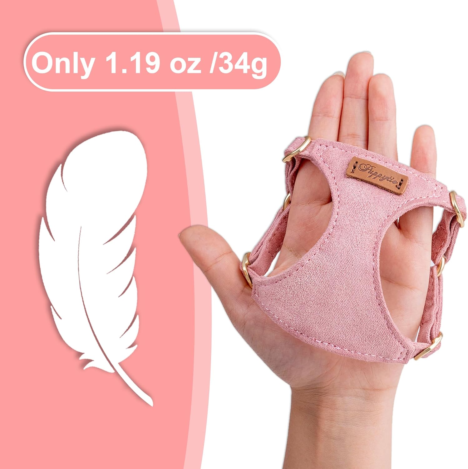 Puppytie No Pull XXS Puppy Harness with Multifunction Dog Leash,Soft Adjustable No Choke Escape Proof Pet Harness Vest,Pink,XXS