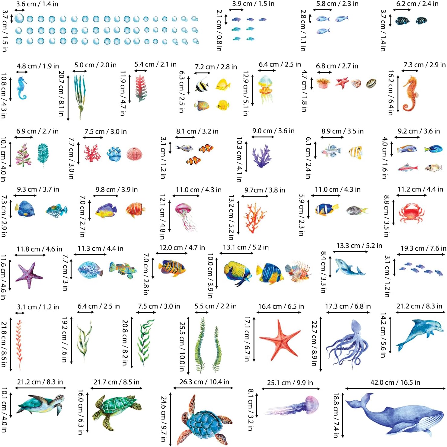 BASHOM DS12-8048 128 Pieces Under The Sea Wall Decals Ocean Fish Stickers Turtle Jellyfish Seaweed Removable for Kids Bedroom Nursery Living Room Home Art Decor Bathroom Baby