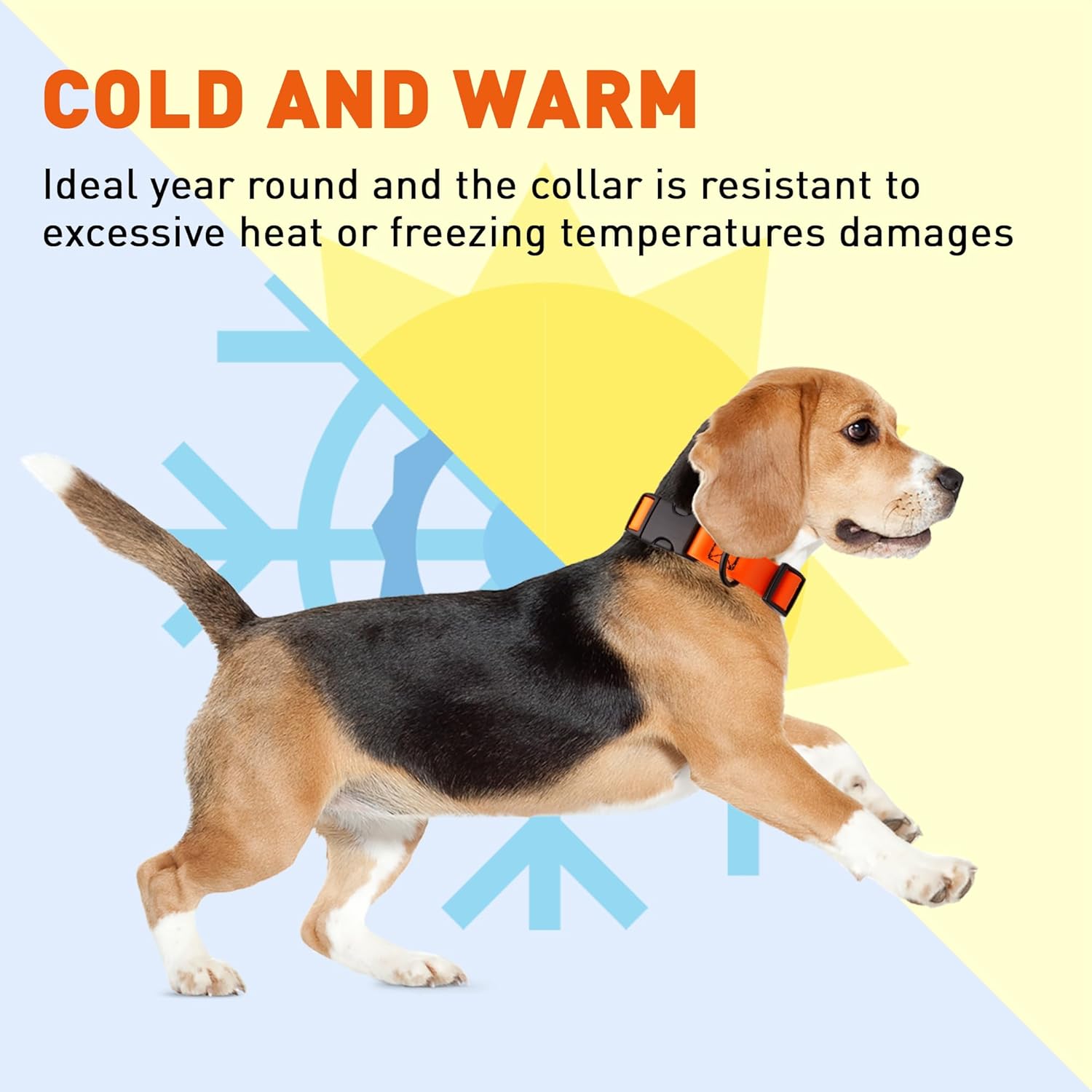 Dogline Biothane Waterproof Dog Collar with Quick Release Buckle Strong Coated Nylon Webbing with Odor- Proof for Easy Care Easy to Clean Fits Small Medium Large Dogs, Orange 5/8" W 9-14" L