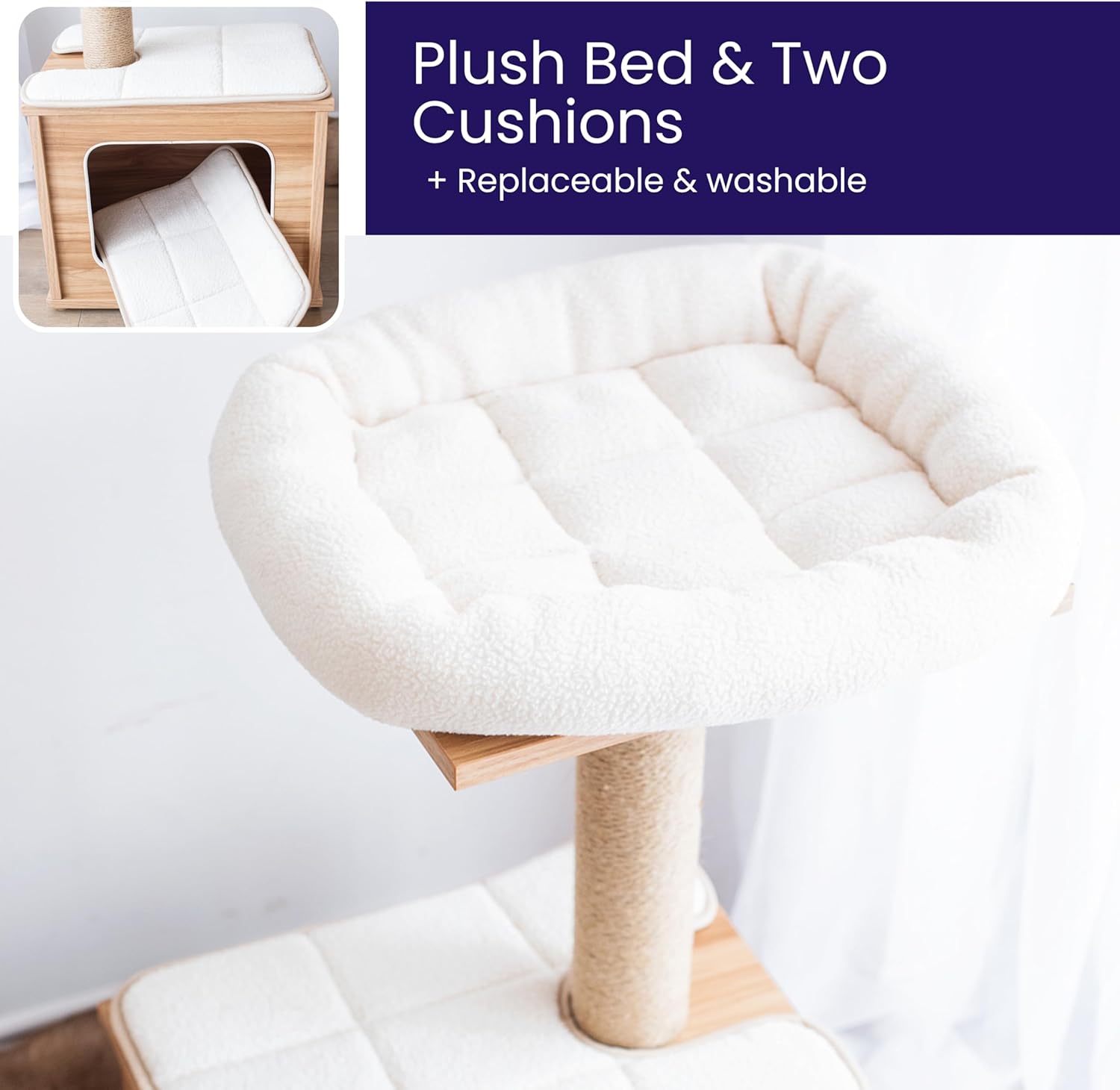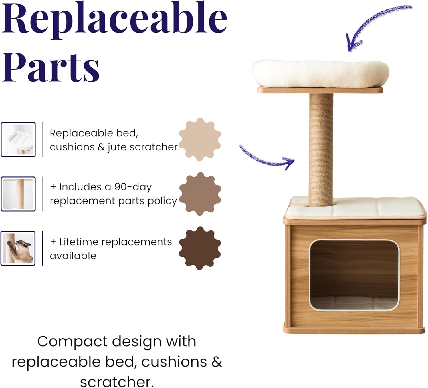 - Replaceable scratching post and pads.