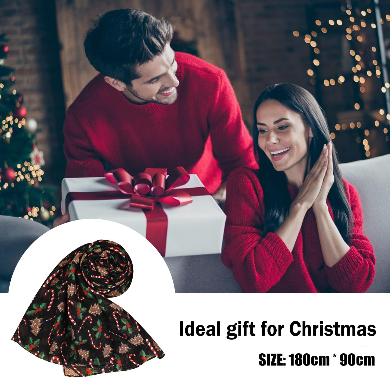 - Size: 180cm*90cm /70.9โ * 35.4โ. Xmas scarfs is large enough to be wrapped around or draped over the shoulders in a variety of ways. With a light texture, Scarf with Christmas Print is easy to carry around and can easily fit into a bag.