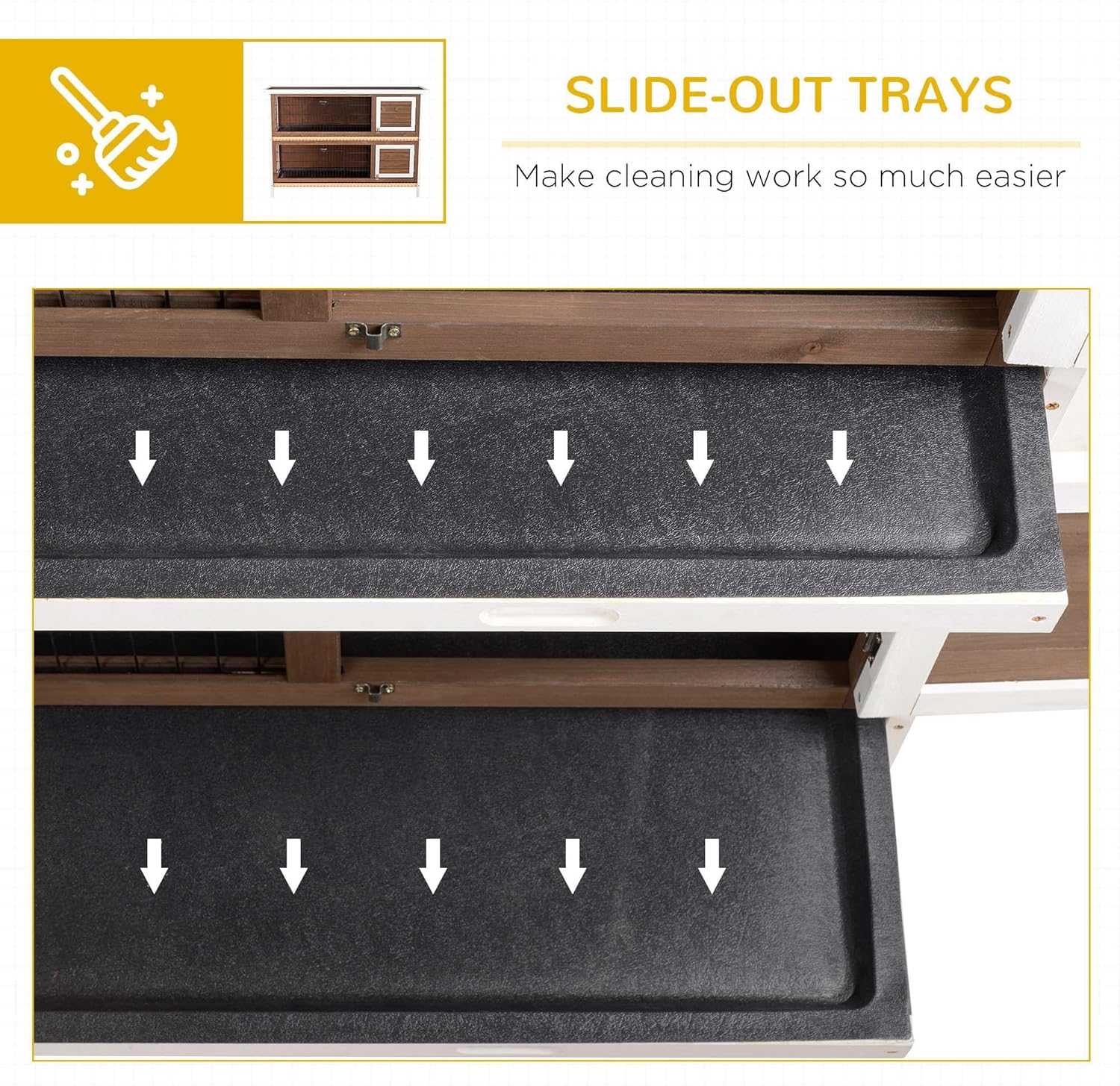 PawHut 54" 2-Story Large Rabbit Hutch Bunny Cage Wooden Pet House Small Animal Habitat with Lockable Doors, No Leak Tray and Waterproof Roof for Rabbits, Chickens, Ducks, Outdoor/Indoor Brown