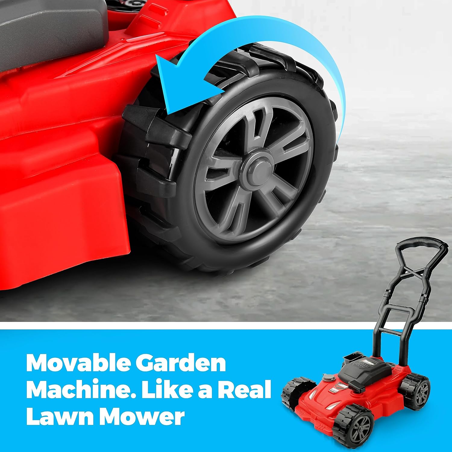 - ๐๐ป๐๐ฒ๐ฟ๐ฒ๐๐๐ถ๐ป๐ด ๐ณ๐๐ป๐ฐ๐๐ถ๐ผ๐ป๐: When you start the lawn mower, it will emit sound and light at the same time, and the gear will also emit a real sound of pushing grass on the grass, which is very realistic and adds a lot of fun to children's play