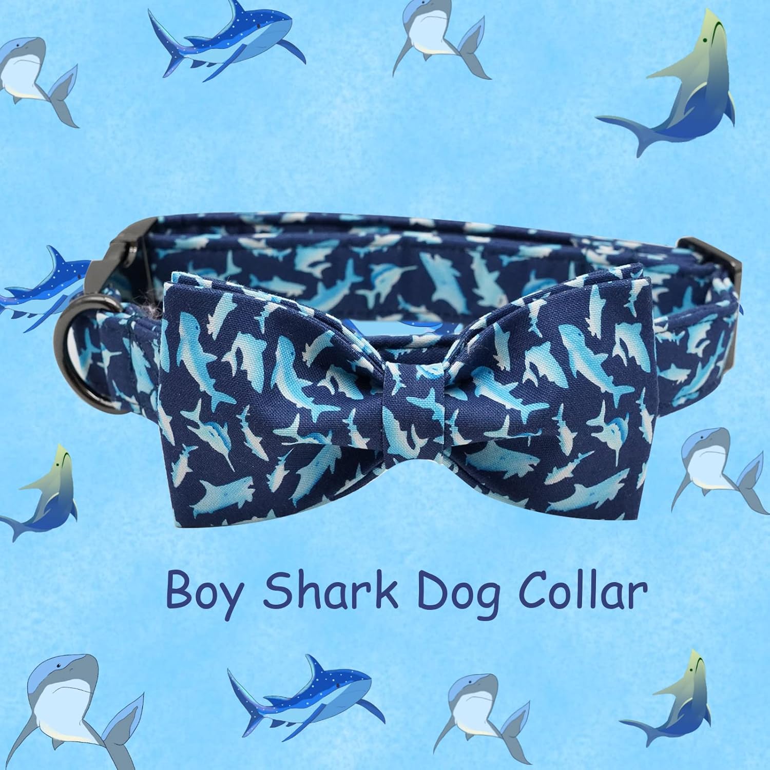 Elegant Little Tail Dog Collar with Bow, Shark Print Adjustable Cute Bowtie Collar for Medium Dogs