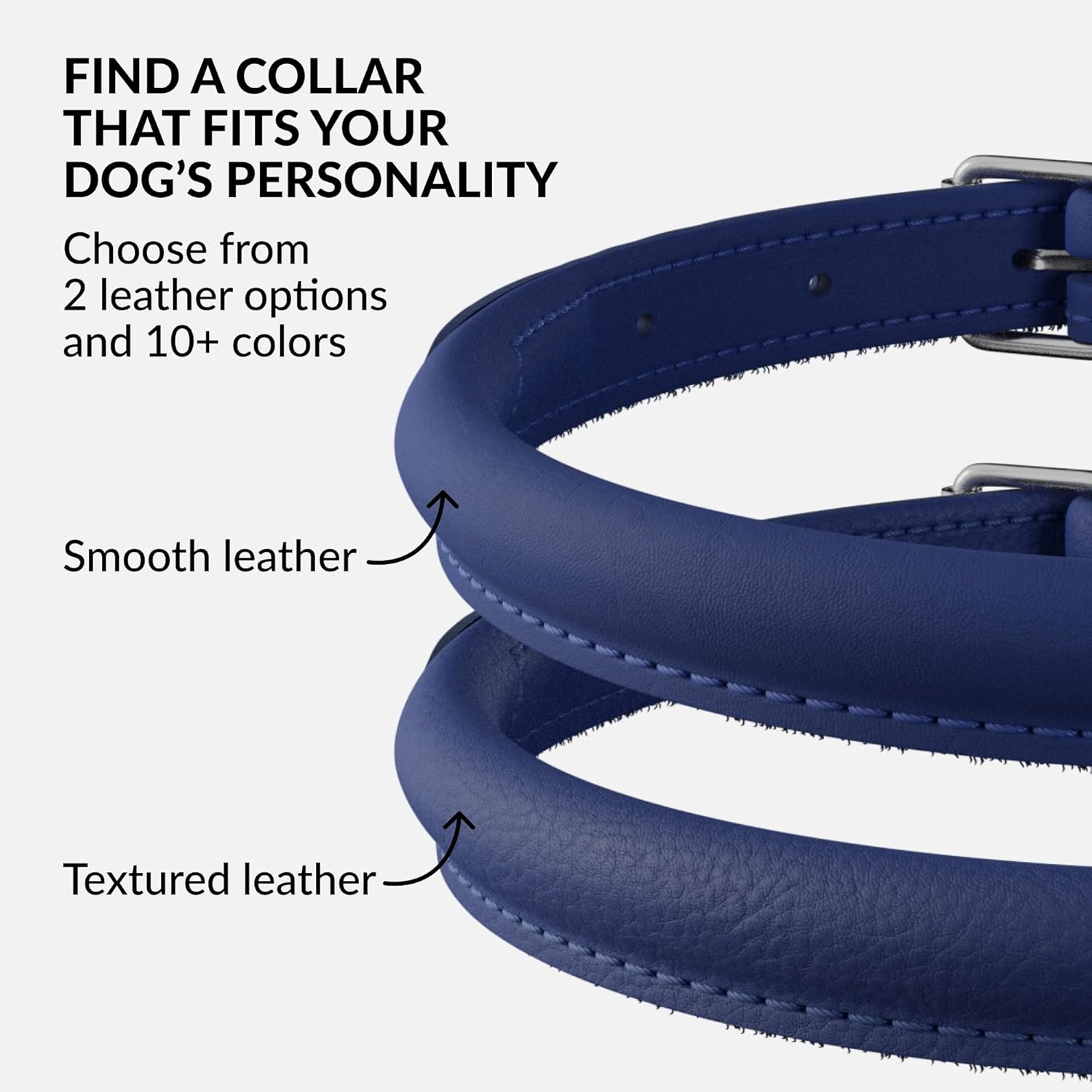 CollarDirect Rolled Leather Dog Collar, Soft Padded Round Puppy Collar, Handmade Genuine Leather Collar Dog Small Large Cat Collars 13 Colors (6-7 Inch, Deep Blue Smooth)