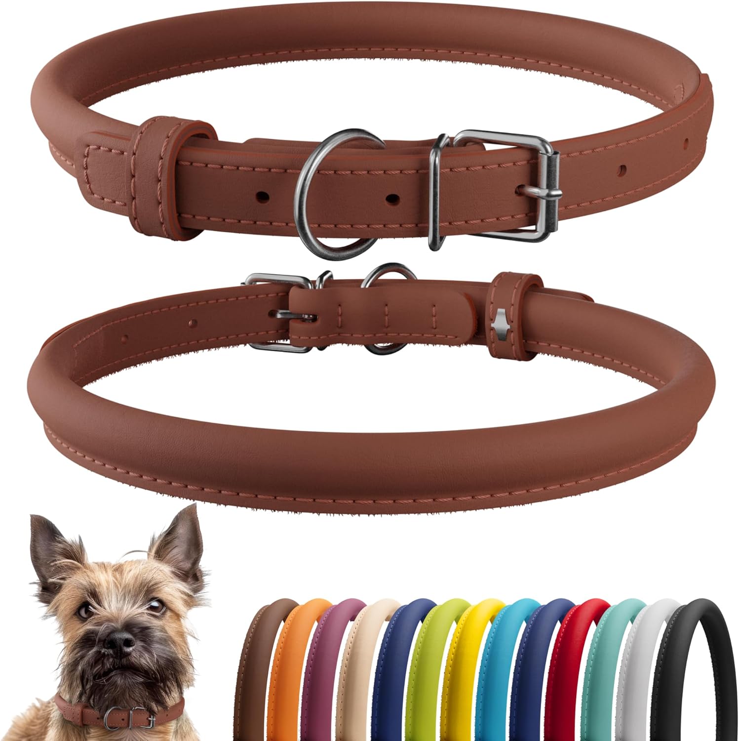 CollarDirect Rolled Leather Dog Collar, Soft Padded Round Puppy Collar, Handmade Genuine Leather Collar Dog Small Large Cat Collars 13 Colors (6-7 Inch, Cinnamon Smooth)