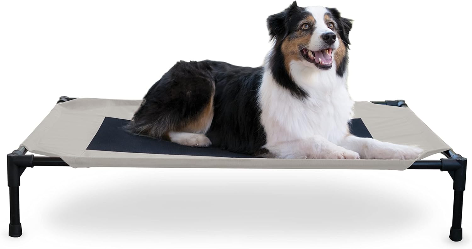 K&H Pet Products Outdoor Elevated Dog Cot, Breathable Cooling Elevated Cot Hammock Pet Bed for Large Dogs, Washable Mesh Cover, Raised Metal Frame, Collapsible, Portable - Large 42 X 30in Taupe