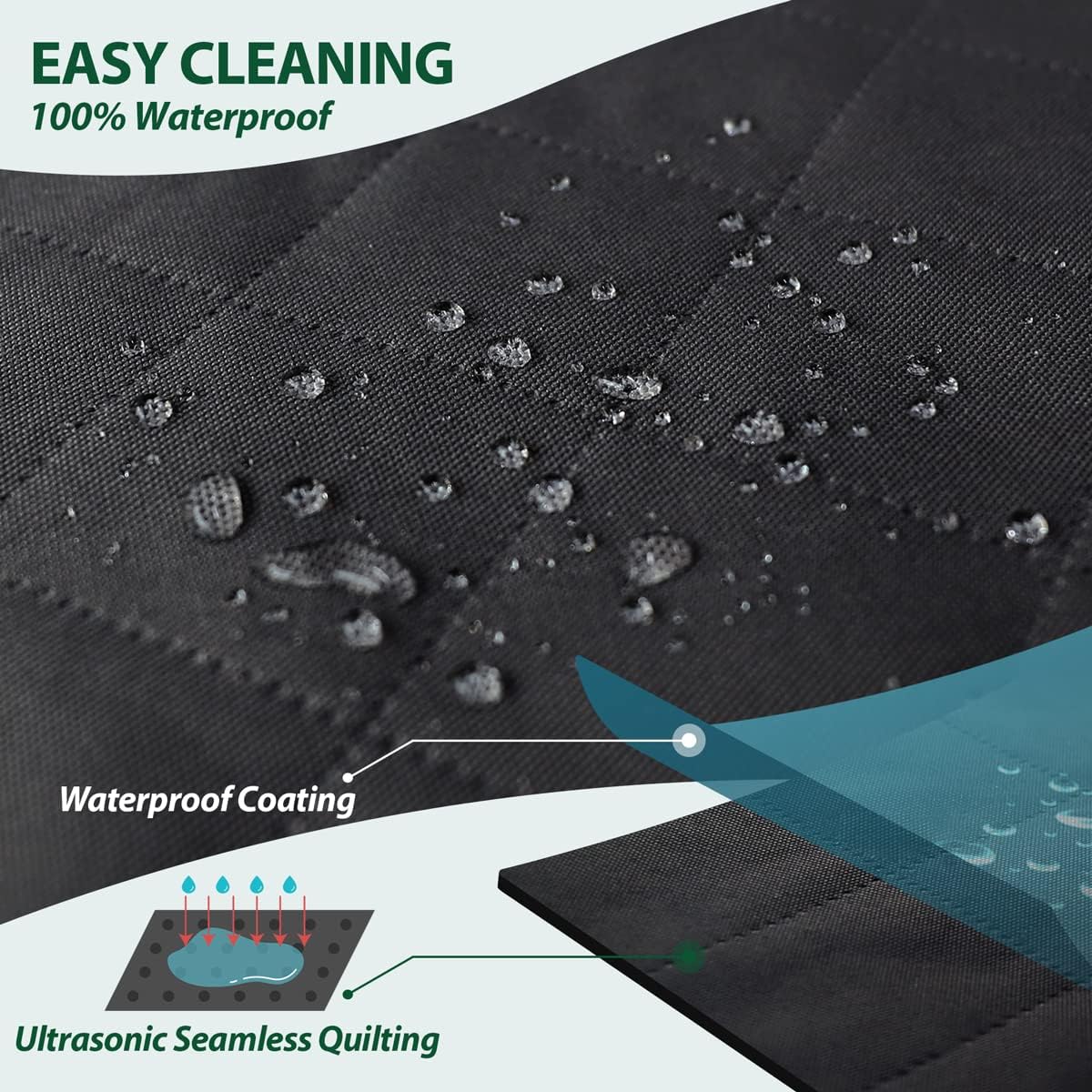 - WATERPROOF DURABLE COVER: Made of heavy-duty 600D oxford fabric with Teflon coating and ultrasonic seamless quilting, this seat cover is 100% waterproof, wear-resistant and built to handle daily use
