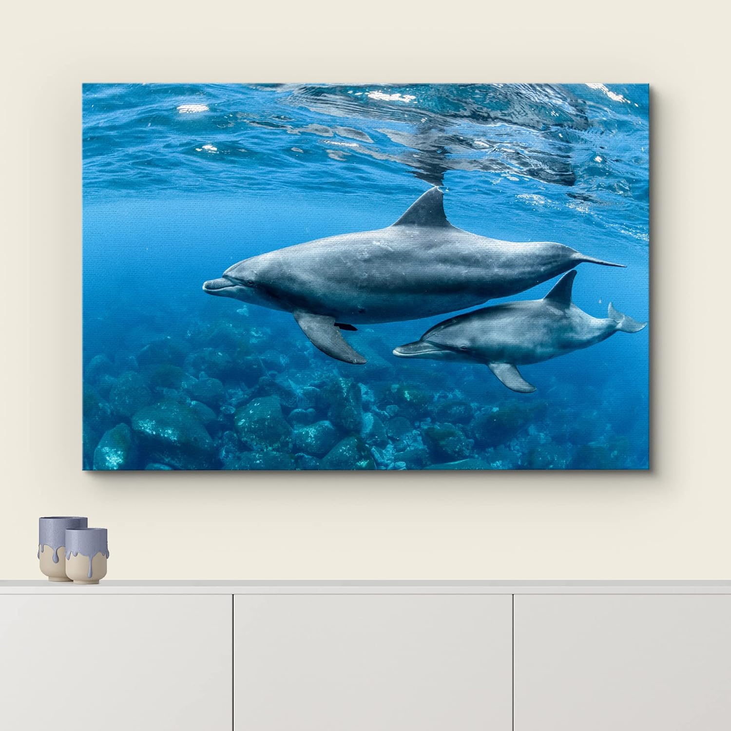 wall26 Canvas Print Wall Art Tropical Ocean Sea Underwater Dolphin Duo Nature Animals Photography Realism Rustic Scenic Landscape Wilderness Earth Colorful for Living Room, Bedroom, Office - 24"x36"