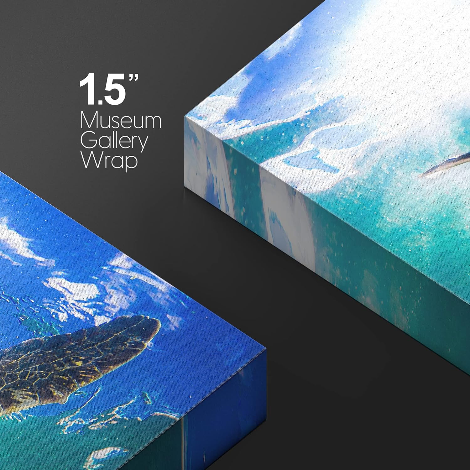 wall26 Canvas Print Wall Art Sunlight Tropical Ocean Underwater Turtle Nature Animals Photography Realism Rustic Scenic Landscape Wilderness Earth Colorful for Living Room, Bedroom, Office - 32"x48"