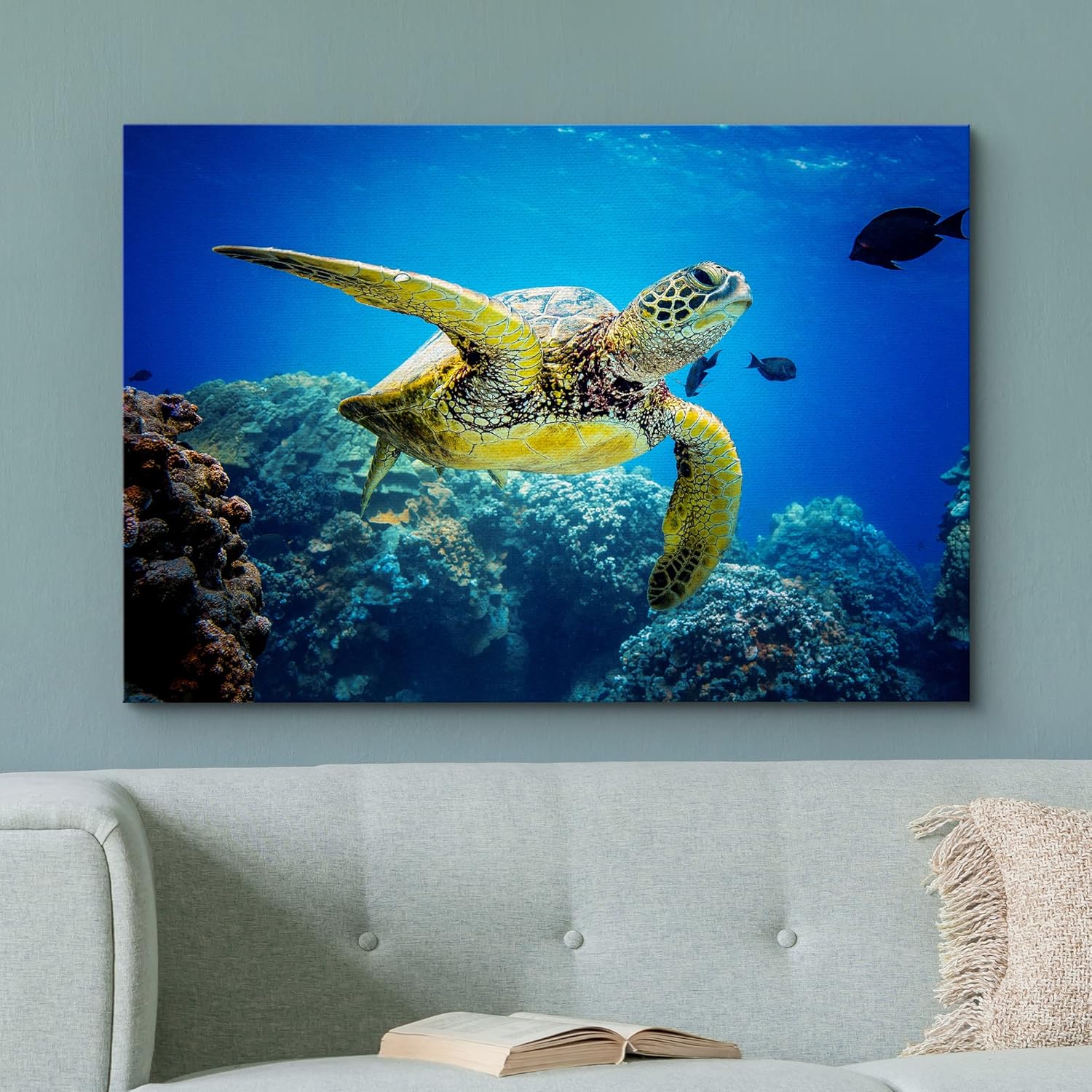 wall26 Canvas Print Wall Art Vibrant Ocean Underwater Swimming Turtle Nature Animals Photography Realism Rustic Scenic Landscape Wilderness Earth Colorful for Living Room, Bedroom, Office - 24"x36"