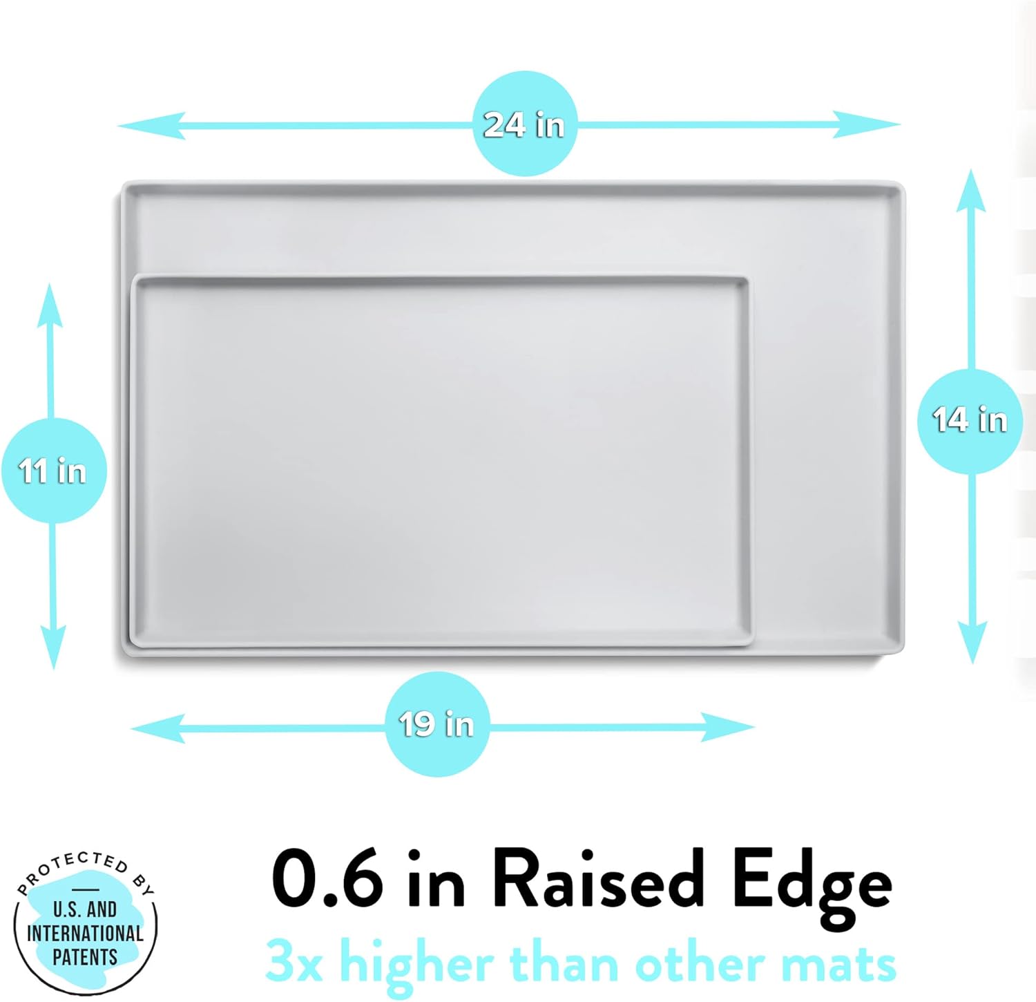 CatGuru Cat Food Mat, Small & Large Pet Feedingd Mat, 100% Waterproof Cat Mats for Food and Water, Silicone Mats for Pet Bowls, Non-Slip Placemat for Water Bowl or Fountain (Large, Silver)
