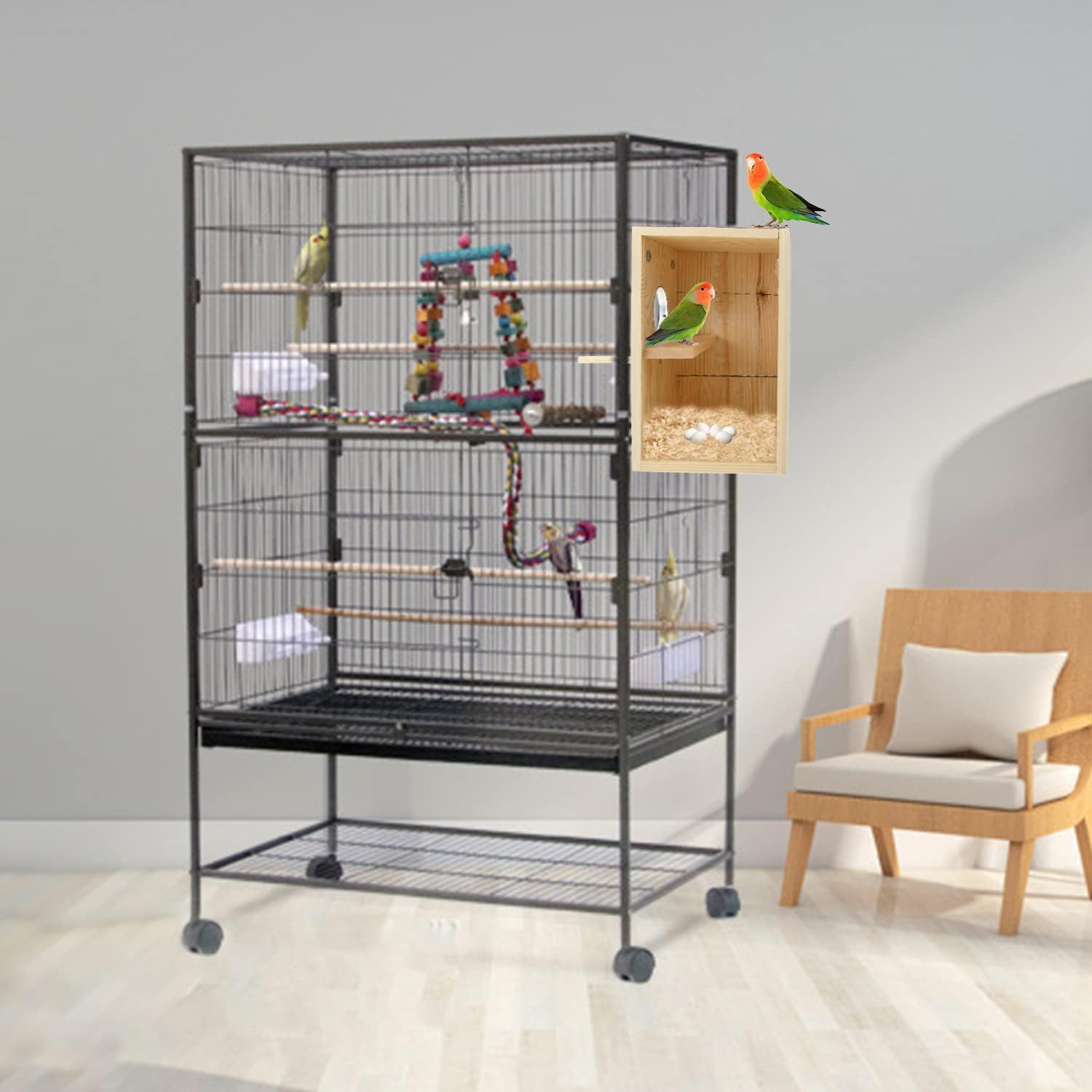 - 【Newly Design】The different design of our bird nesting box from other stores is the material of the breeding box.This stereoscopic parakeet nest box adopts combination of high-quality pine and transparent acrylic. Not only makes it easy for us to clear see the state of parrots in the bird breeding box through the acrylic side, but also can observe and record the breeding and hatching process between parrots.