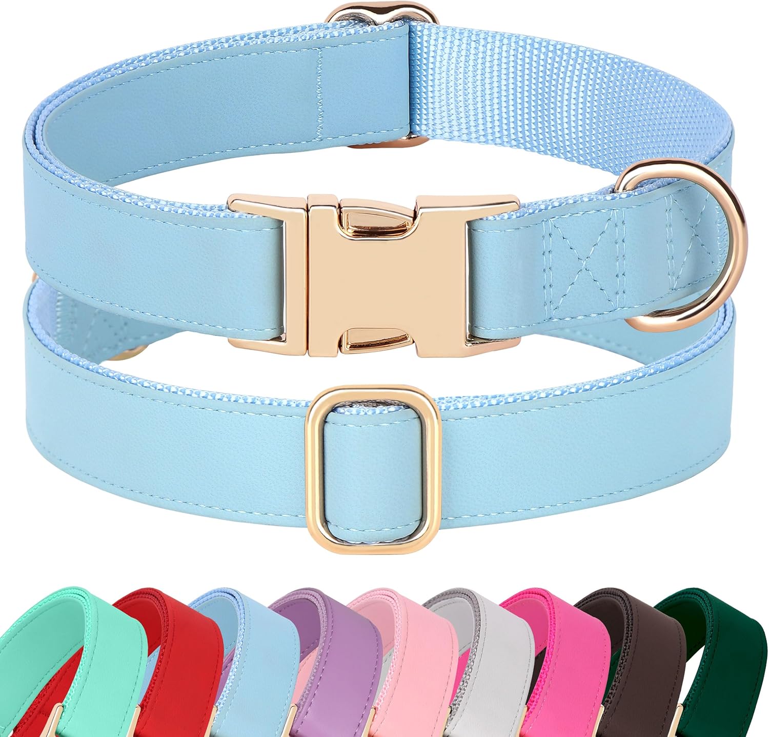 PET ARTIST Soft PU Leather Dog Collar for Medium Dogs, Bright & Classic Nylon Padded Durable Dog Collar Leather with Quick Release Metal Buckle Adjustable for Male Dogs, Neck Fit 13-19"