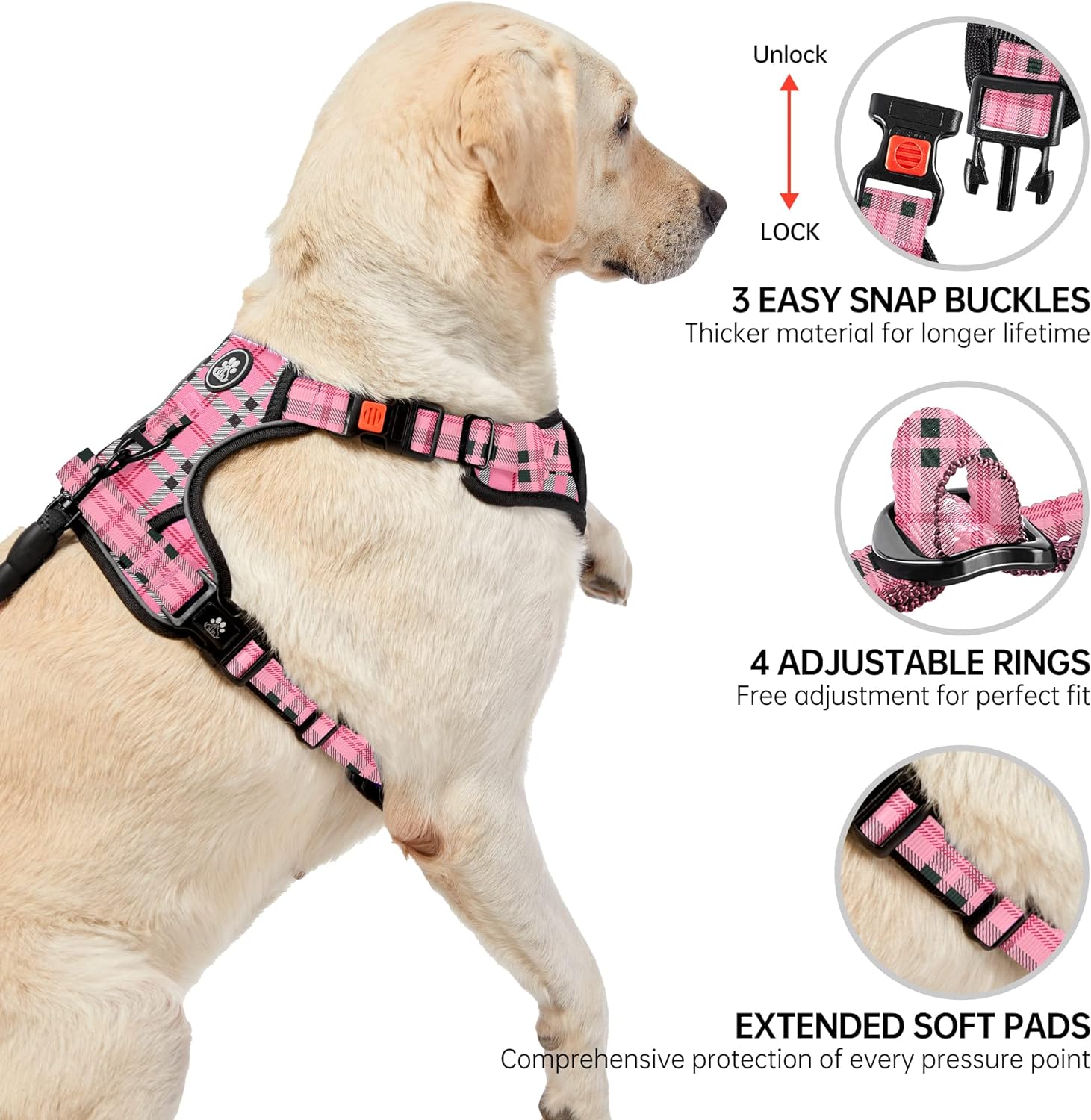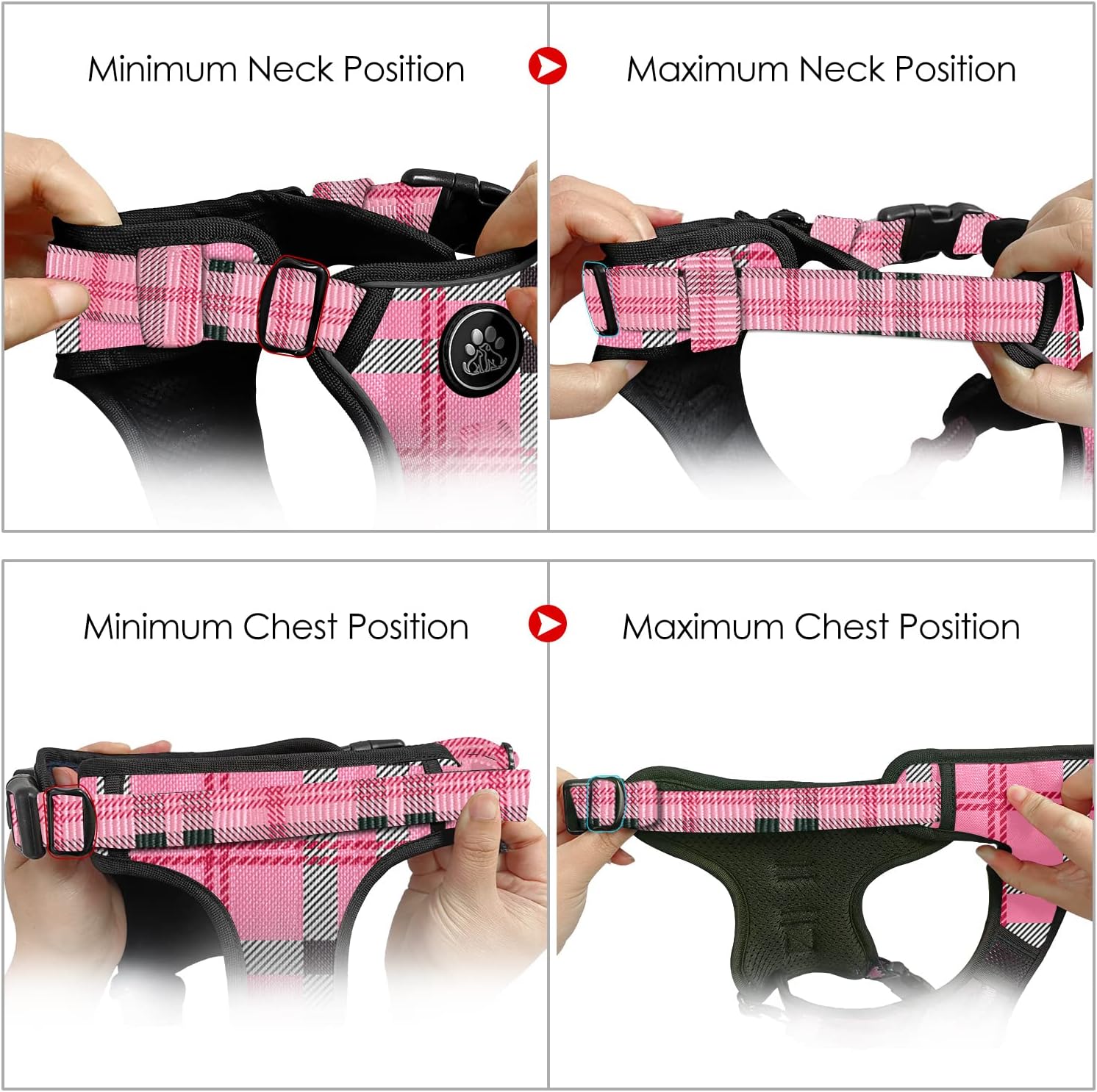 NESTROAD No Pull Dog Harness with Leash, Reflective No Choke Pet Vest Harness,Adjustable Soft Padded Dog Harness with Easy Control Handle for Medium Dogs(Checkered Pink,Medium)