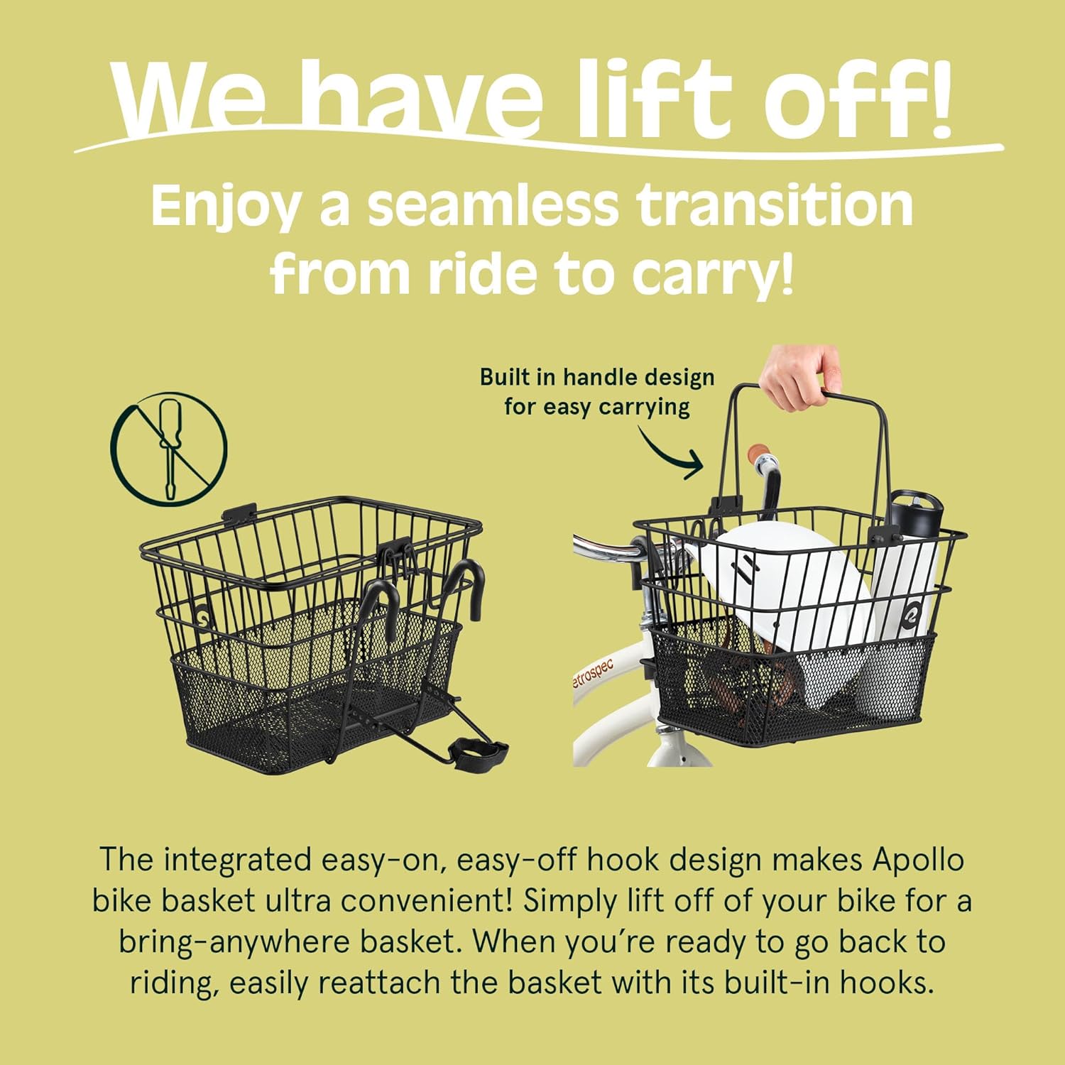 Retrospec Apollo Detachable Front Bike Basket Steel Half-Mesh with Integrated Detachable Hooks and Built-In Handle, Easy Assembly and Portability for Bicycles
