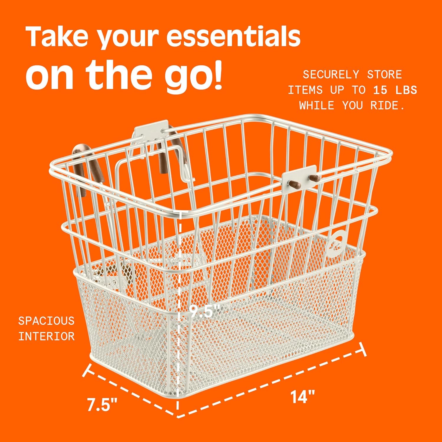 - BUILT FOR DAILY DUTY - Weather-resistant steel construction stands up to rain, sun, and wear. Like all quality bicycle baskets, this bike front basket delivers reliable durability for years of use