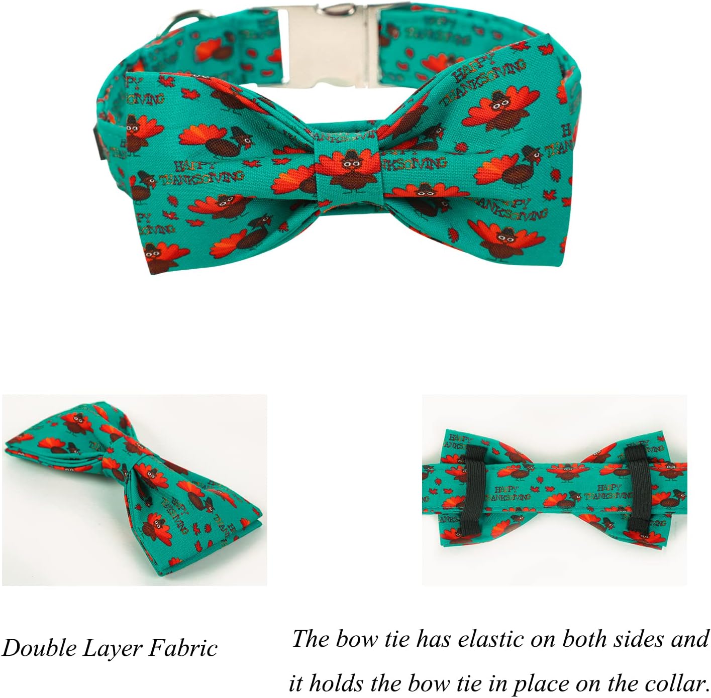 Lionet Paws Thanksgiving Day Dog Collar with Bowtie, Dog Bowtie Collar with Metal Buckle for Dogs, Adjustable Comfortable Turkey Dog Collar Girl Boy Gift, L, Neck 16-24 in