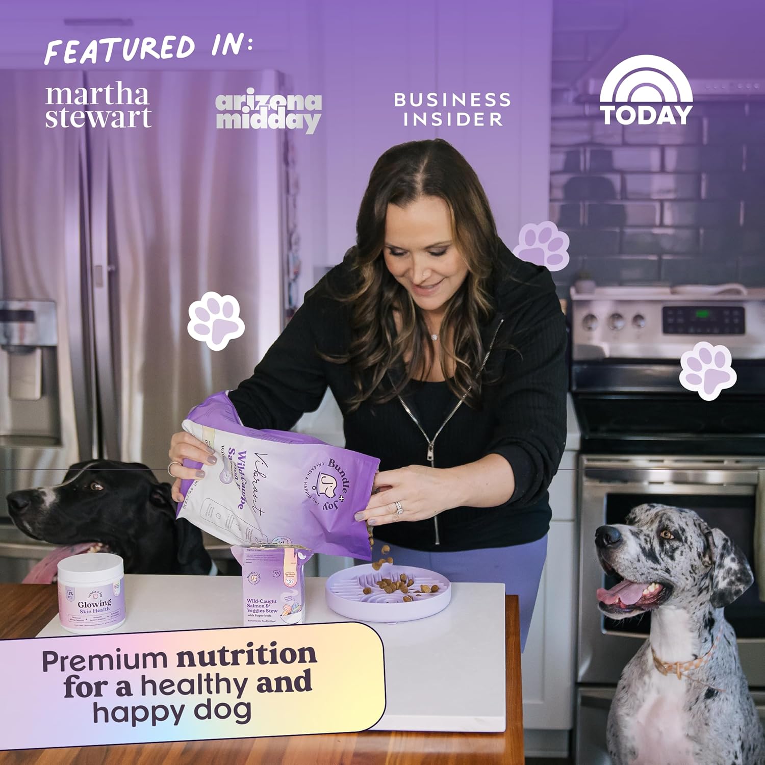 - FOR ALL ADULT BREEDS AND SIZES: Bundle x Joy dog food has omega fatty acids to support healthy skin and a shiny coat and probiotics to support digestion. The kibble pieces are small enough for small breed dogs to enjoy.