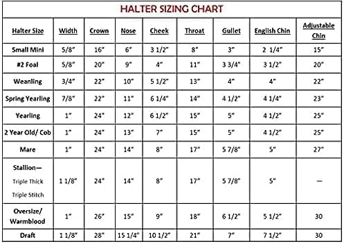 - MULTIPLE SIZES AND STYLES: Our beautiful leather halter for horses comes in three sizes. Cob, Horse or Warmblood. You can see the specific measurements in our comparison chart below. You can also choose from a Padded Halter In Green or Blue. Our padded halters are double stitched. Our Brown/Brass, Black/Brass, and Black/Chrome halters are triple stitched. Plates Match Hardware. All Halters have a throat snap.