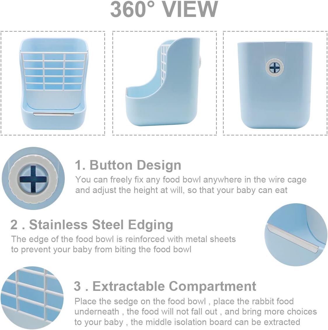 - 🐹【Small animal automatic feeder】The design of food bowl + grass rack, provides more choices for pets, and the rack is easy to disassemble, which can provide more space for placing food.