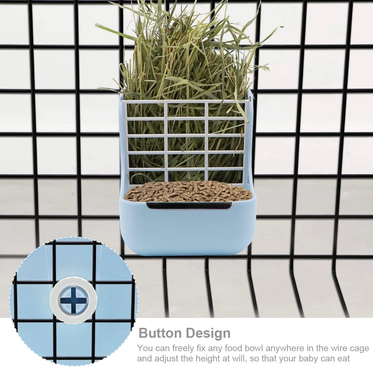 Litewoo Rabbit Hay Feeder Guinea Pig Feeder, 2 in 1 Automatic Small Animal Food Bowl Feeding Cage Accessories (Blue)
