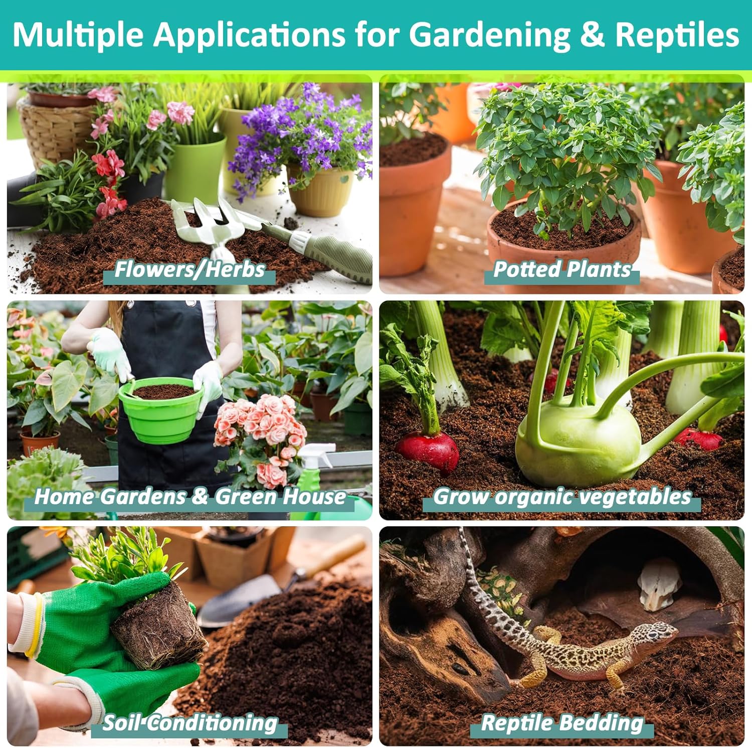 - Wide Application: Suitable for all gardening applications, potted plants, grow microgreens, container gardens, raised garden beds, indoor plants, flowers, vegetables, herbs; Also suitable for bedding of various reptiles, it worked great for making organic compust; Tips: When mixing with water to hydrate make sure to start out slowly so you achieve the consistency you want