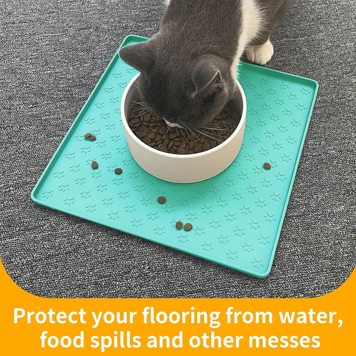 - [Quantity & Size] Contain 1 green silicone pet food mat - 11.8" x 11.8" diameter. Available in 6 colors. The foldable square shape and size won't take up too much space. Suitable for small and medium cat dogs.