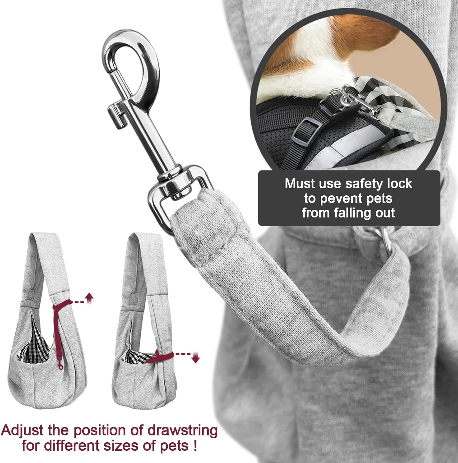 - SAFE DOG CAT SLING: Although Soft and breathable fabric can make your pet feel comfy and easy inside the sling bag,he may still feel boring and try to jumping out sometimes. But don't worry,We will provide you a safety rope with a hook to connect dog's collar/harness and sling strap,then your puppy won't falling out accdiently.