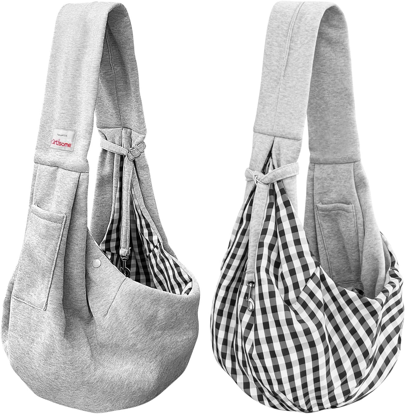 - WIDE REVERSIBLE CAT DOG CARRIER : Pet slings should be not only functional for carrying pet, but also super-stylish.Artisome reversible sling is a great plus allowing you have two styles to match your clothes well and making you become the most fashionable kangaroo mama during daily walking or weekend adventurepplication.Artisome small dog carrier sling helps you to take your pets into malls,grocery stores, subways, parks, and daily walk or trips .