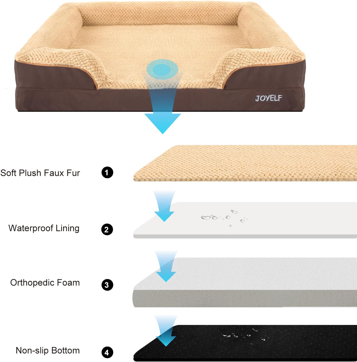 JOYELF Orthopedic Dog Bed for Large Dogs, Waterproof & Washable Cover, Nonskid, Coffee
