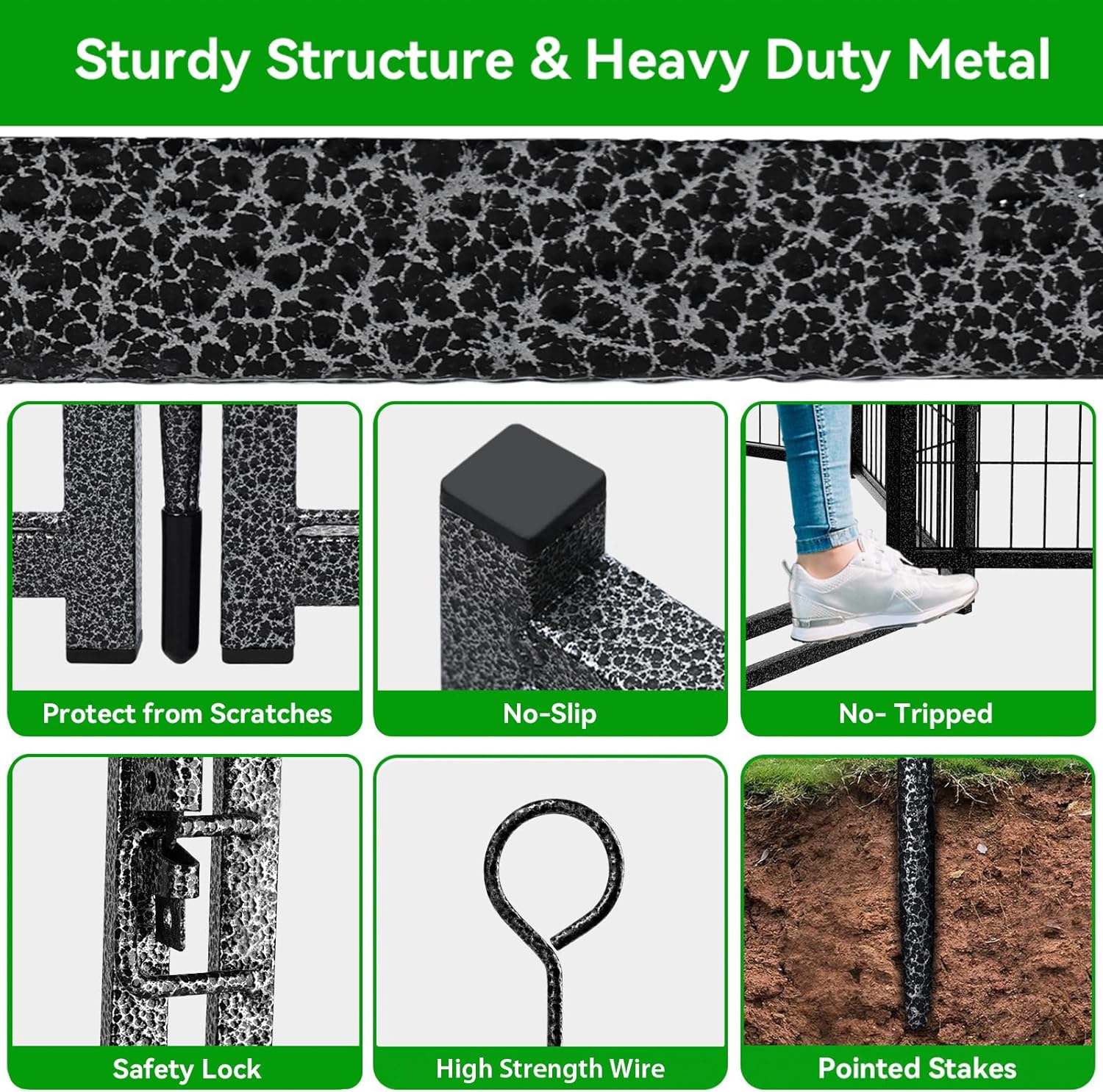 - 【Anti-Rust Coatings Material】Kfvigoho puppy playpen made of heavy-duty metal, sturdy and durable, steel wire smooth and solid, pet dogs couldn't damage or chew it, anti-corrosion coatings and rust-proof process helps panels works well outdoor and extend its life, the indoor and outdoor dog pen great for people with dogs