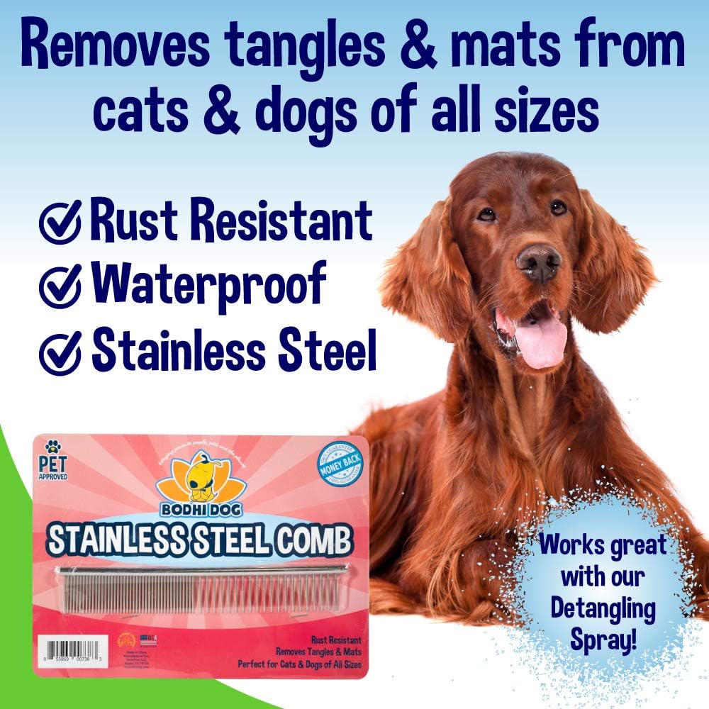 - EASY DETANGLING W/ FINE & WIDE TEETH: 2 grooming tools in one! Our detangler comb has fine & wide tooth spacing on opposite ends allowing you to easily detangle, finish & fluff your entire pet. Works great on the muzzle, chin, body, hindquarters front, back legs & tail. Use it to remove stubborn mats, tangles, loose fur, and dirt. The teeth are blunt and slightly rounded to not irritate or scratch your pet’s skin while grooming and removing a mat, tangle, or clump of fur.