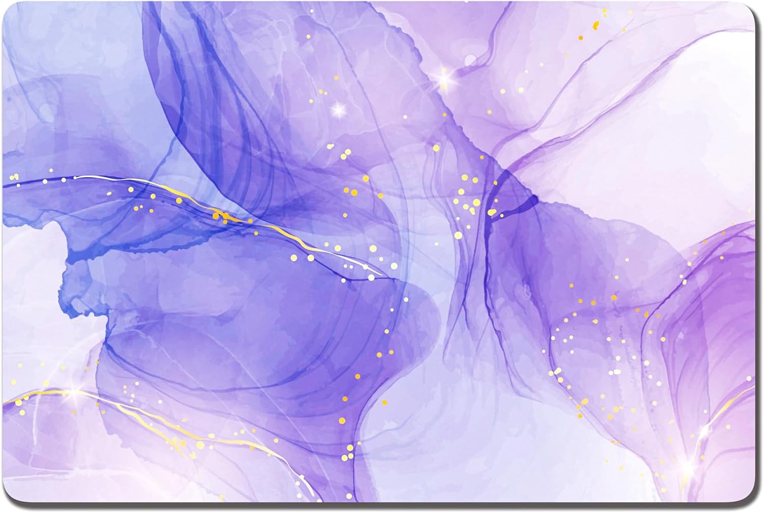 Rnivvi Dog Food Mat, 16" x 24" Marble Absorbent Dog Cat Bowl Mat for Food and Water, Cute Anti-Slip Rubber Pet Feeding Rug Protect Floors, Puppy Placemat for Feeding & Watering Supplies, Purple