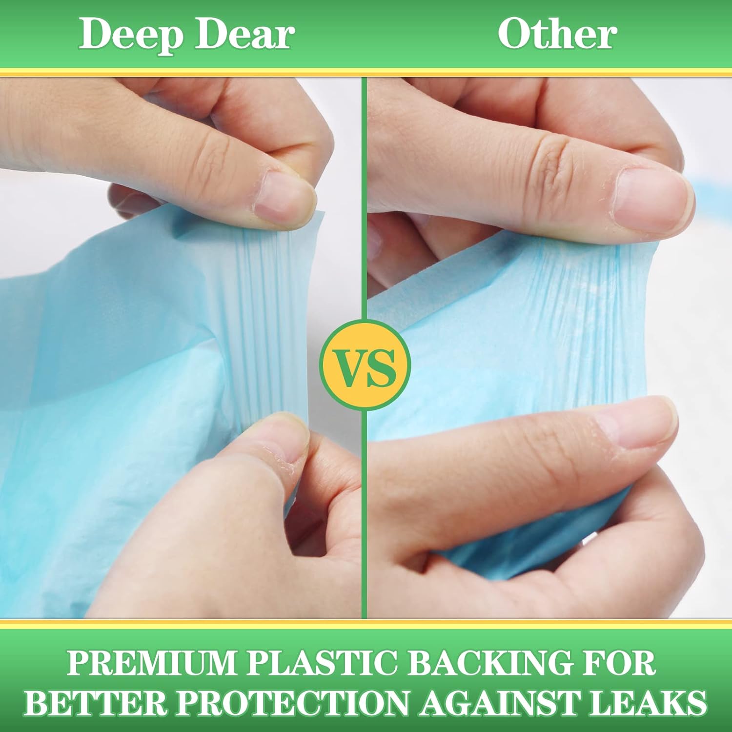 - High Quality Materials & All Day Protection: DEEP DEAR features premium materials, the upgraded pet pee pads for dogs are of excellent quality and resistant to scratch and tear. Our puppy training pads can be used for at least one day. You no longer have to worry about floor or furniture being damaged by pet's urine.
