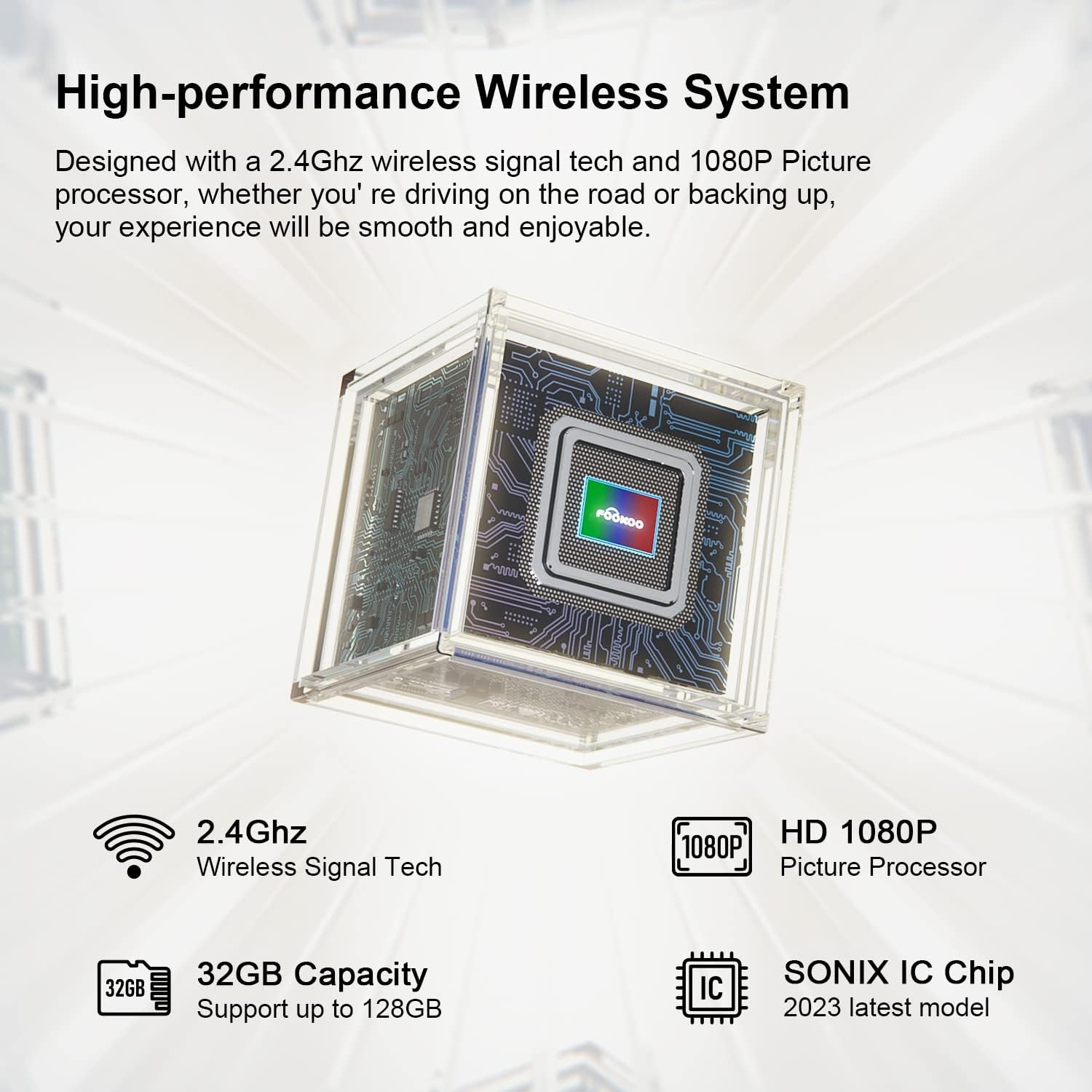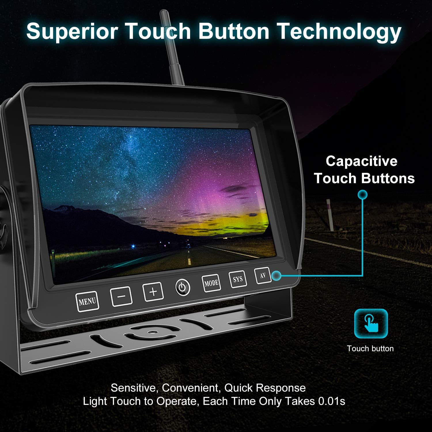- β Advanced Capacitive Touch Buttons & Digital Signal: Touch buttons are more sensitive and convenient than traditional buttons. Gently touch-operated, its quick response makes it safer for you to use while driving. The wireless digital signal transmission reaches up to 108 feet in the open area, giving you a steady and real-time picture that stays steady and lag-free even when the car is traveling at speeds up to 95 MPH.