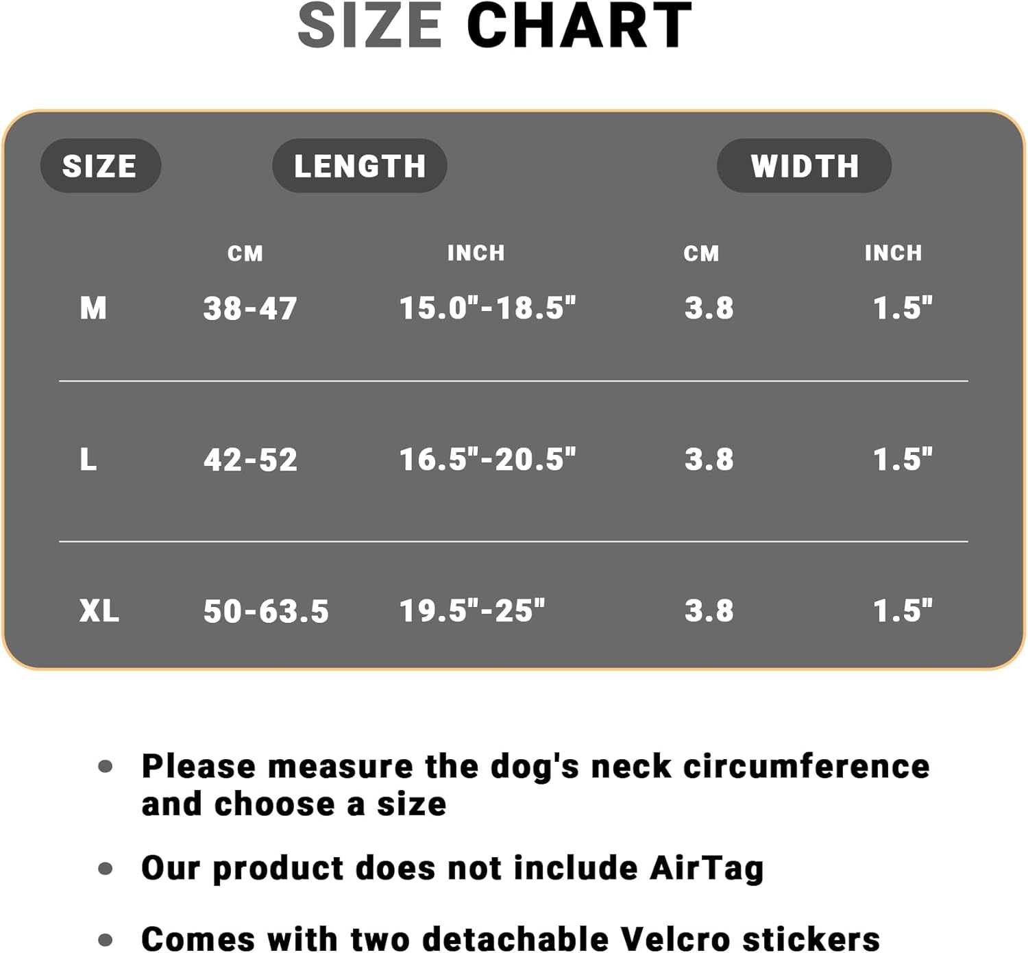 - 3 Size Option:GPS dog collar are available in 3 sizes, (neck size: M=15-18.5", L=16.5-20.5", XL=19.5-24.8" ).Please measure your dog's neck before ordering.If you buy the wrong size, please contact us for a free replacement