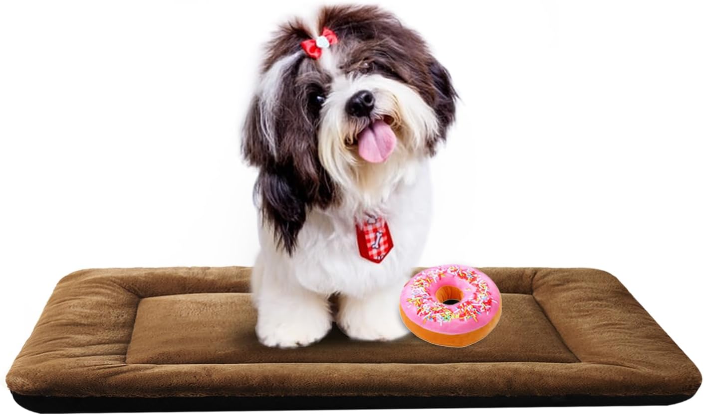 Dog Beds Crate Pad for Small Dogs Ultra Soft Dog Crate Bed Washable & Anti-Slip Kennel Pad for Dogs Cozy Sleeping Mat,Brown 24inch