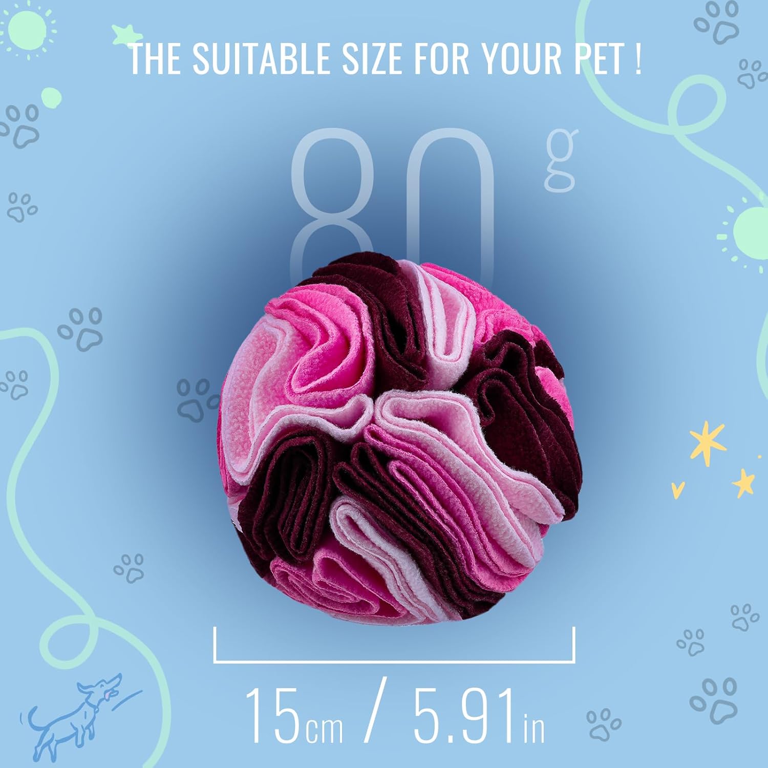 - 🐶Accompany your pets 🐶 We are a family, while your pets accompany you, our Larimuer snuffle balls also accompany them. Our snuff balls are made of high-quality, odorless polar fleece material, taking care of your pet's health.