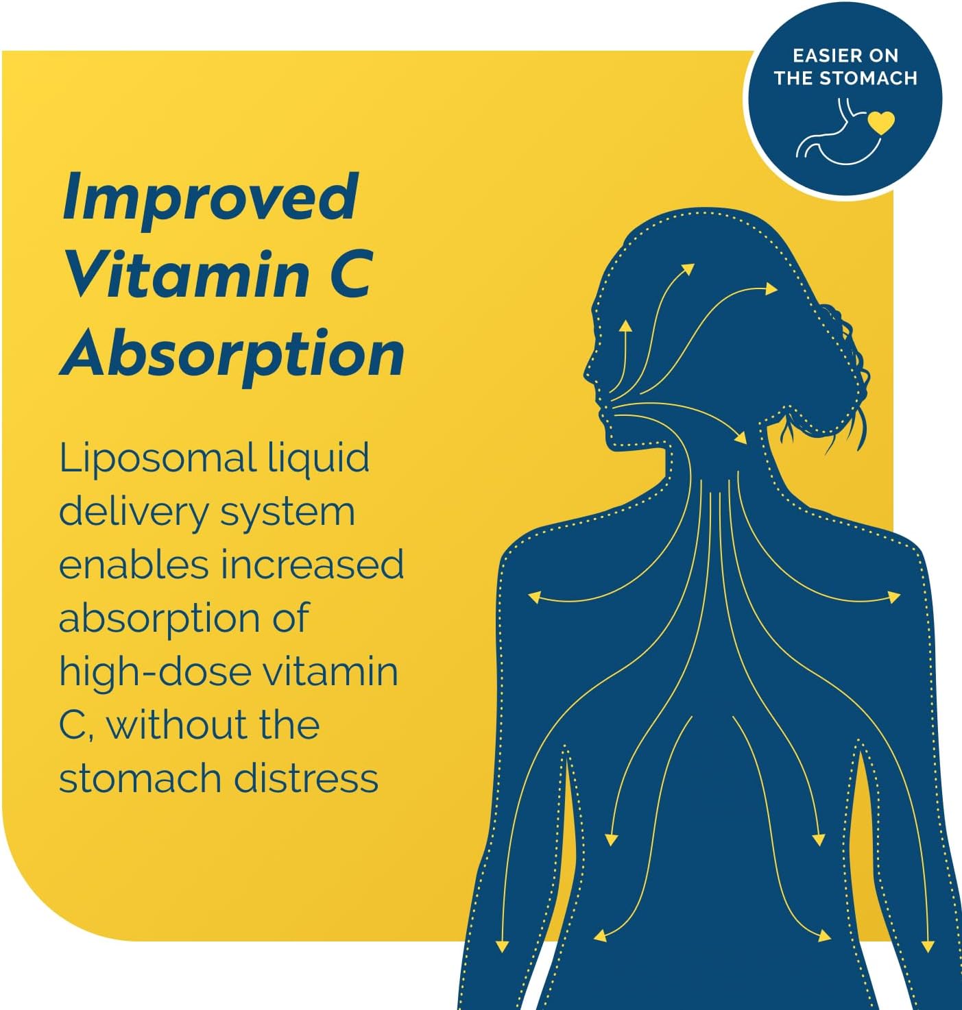 - Enhanced Absorption - High dosing of common vitamin c liquid products can be harsh on the stomach. This liposomal delivery system, often used for the delivery of pharmaceuticals, enables increased absorption of high-dose concentrated Vitamin C without stomach distress.*