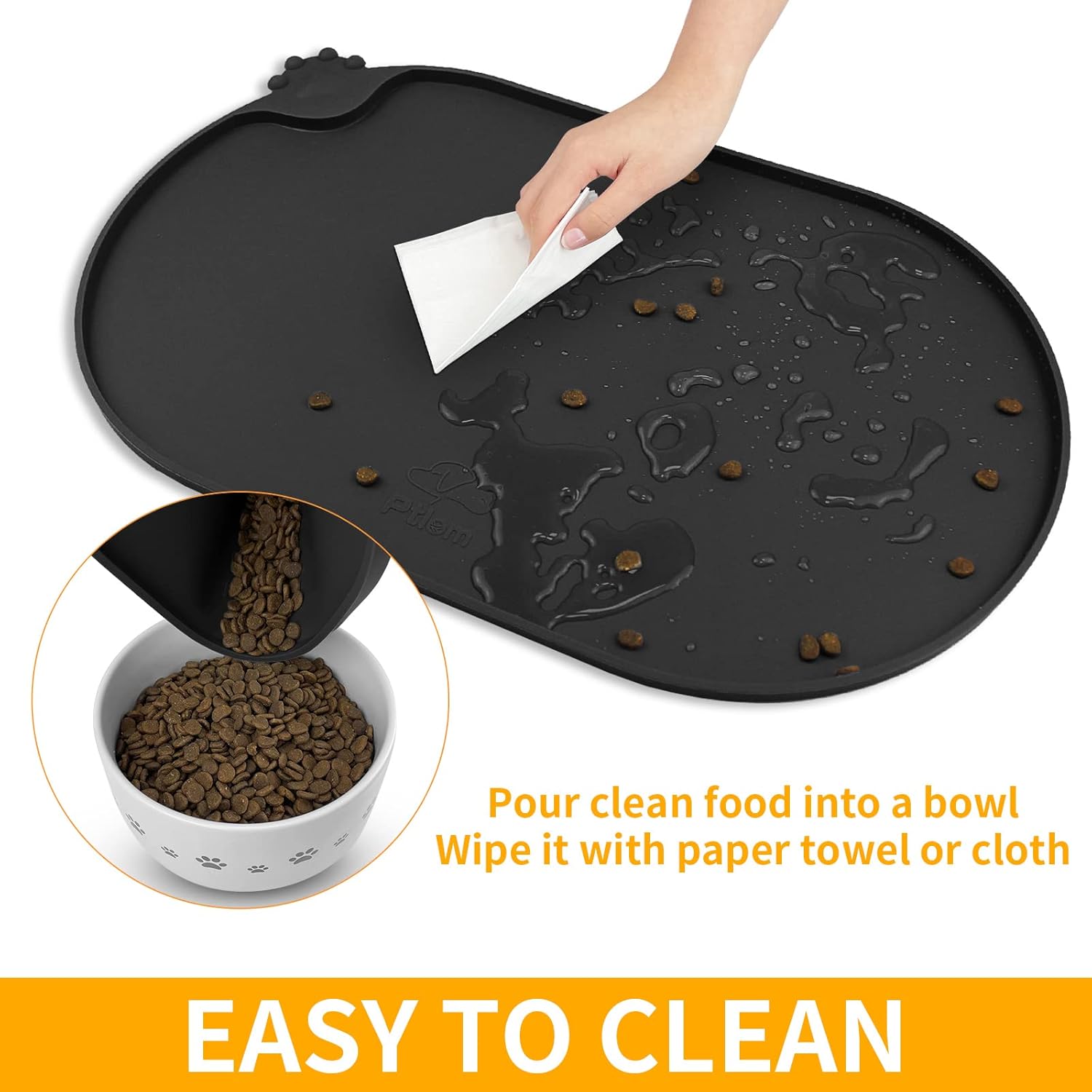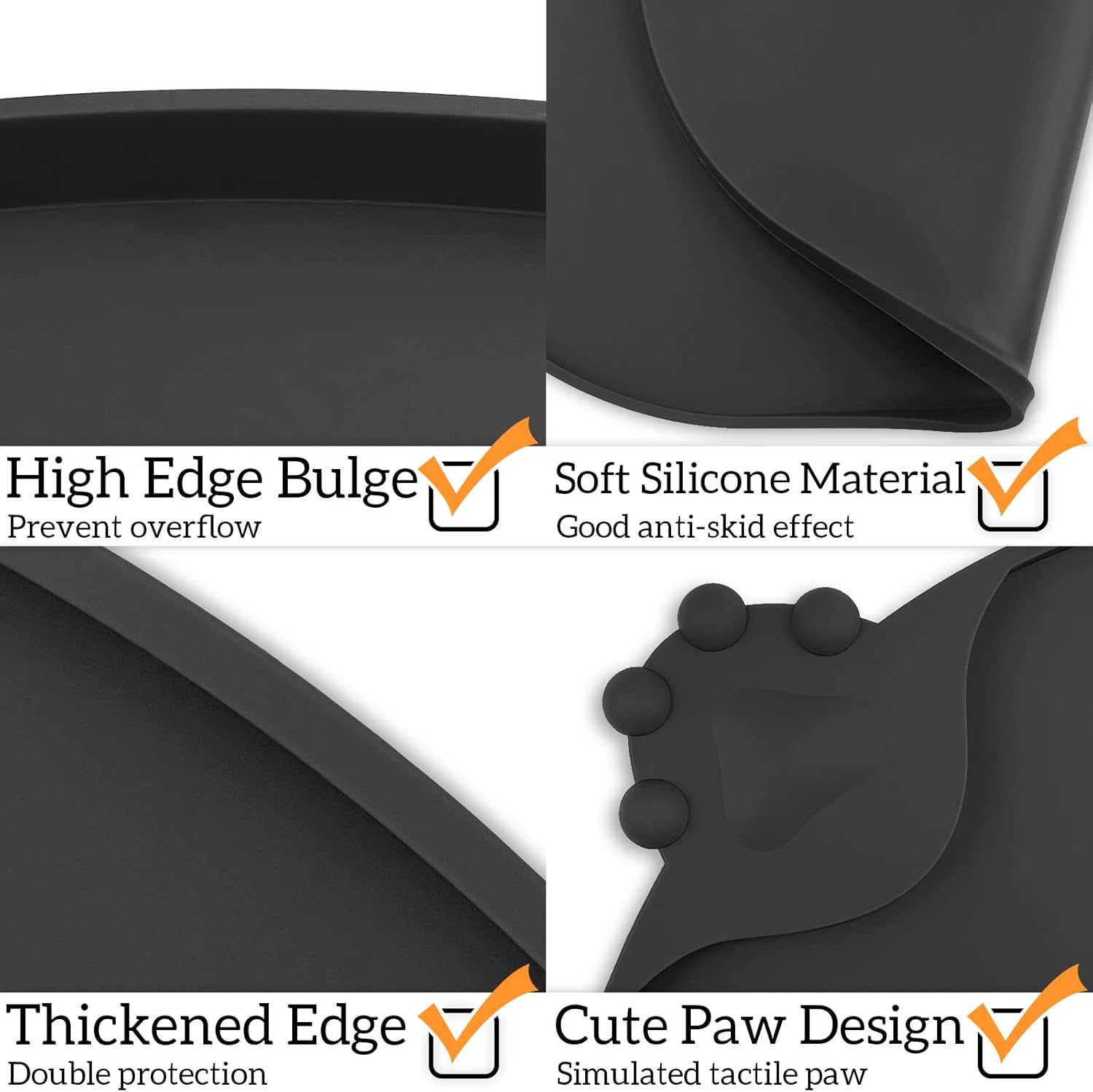 - 100% Waterproof and Anti-Slip: Our dog bowl mat with high-lip edges. Leak-proof pet placemats can prevent food and water overflow, and protect the floor. Prevent pets from eating contaminated food. Non-slip silicone mat keeps the bowl in place.