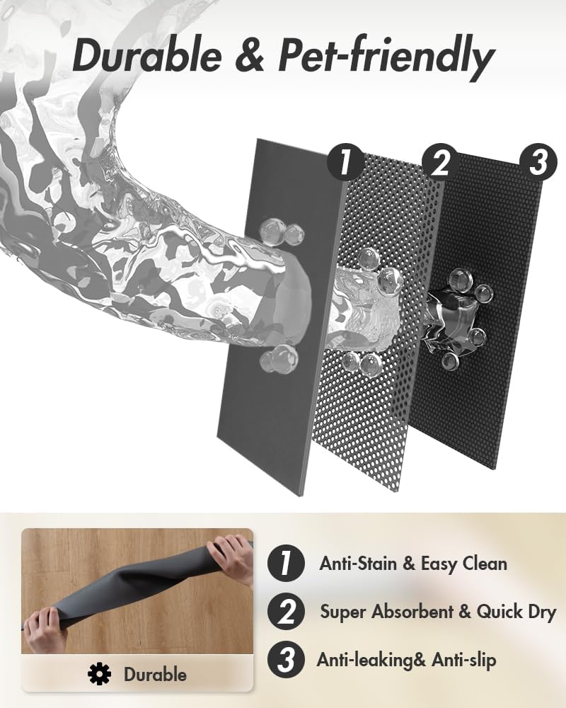 - Pet Friendly & Durable: Sturdy feeding & watering supplies mat designed to avoid torn or mistakenly eating. Brand-new material without strong odors, welcome by most pets. This dog & cat food mat has just enough traction that pets are able to stand and eat comfortably. Moreover, itβs recyclable.