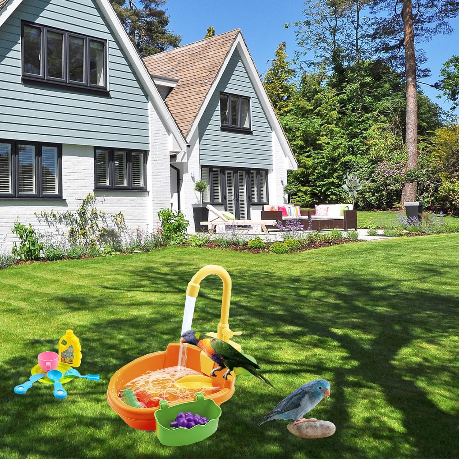- 【 Multi functional bird bathtub】: The parrot bathtub can be your child's simulated dishwasher or your bird parrot bathing tool. It can be used as a children's toy, and the bird bath tub contains many small toy accessories, which will make birds more interesting when taking a shower. You, your children, and pets will have a wonderful summer.