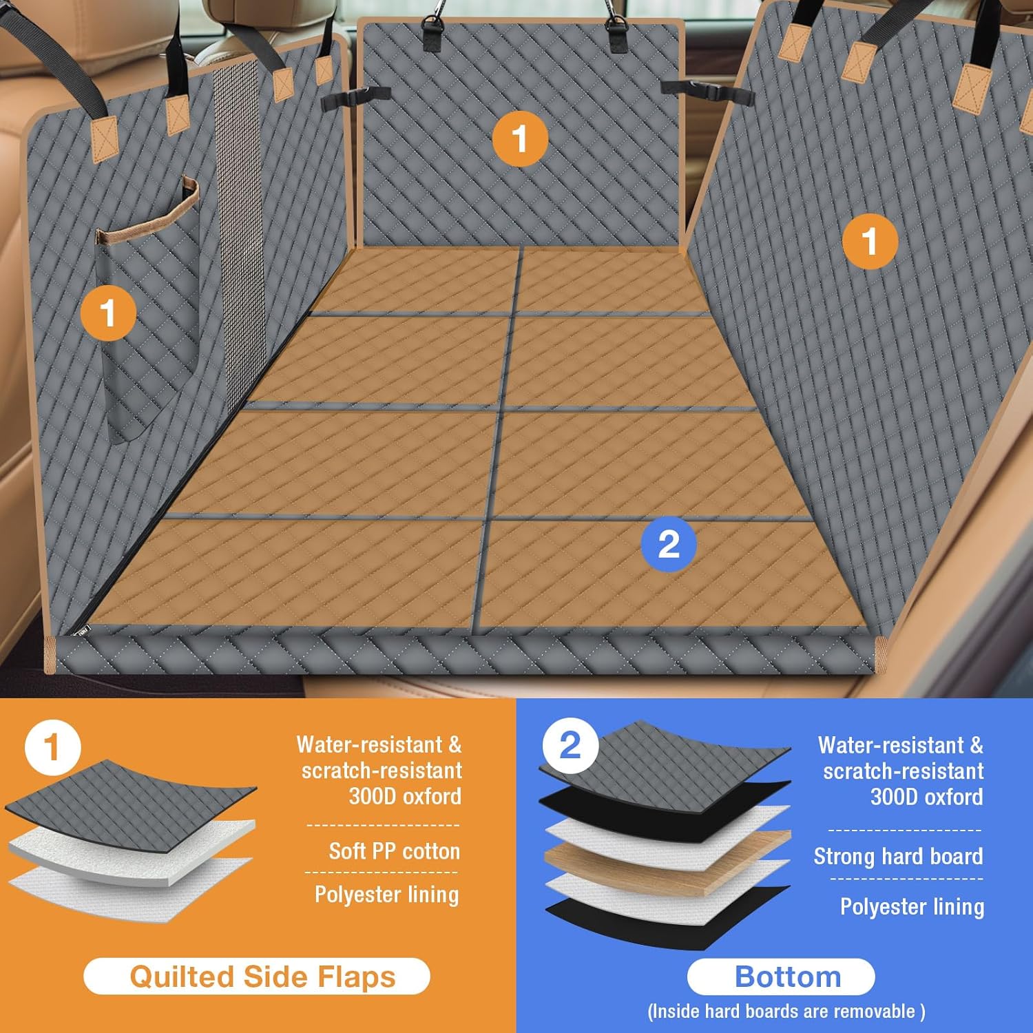 - 【No More Pets Falling】The back seat cover for dog features sturdy bottom board, which is strong enough to support your dog with dog safety seat belt to prevent your pet from sliding during drive.