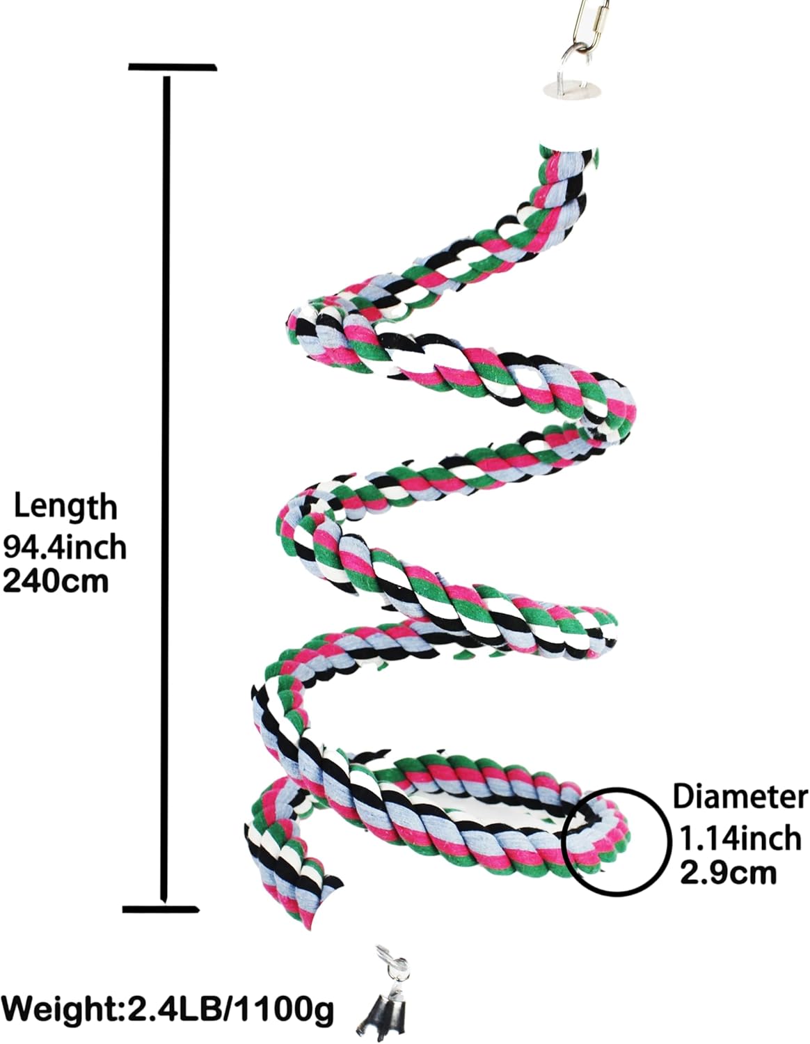 - π¦[WHAT YOU GET] 1pc 94.4inch length soft cotton spiral rope with metal bell,fully closed/open hook can hang in birdcage or outside safety,bendable internal steel wire can re-sharp it provide more fun for your pets